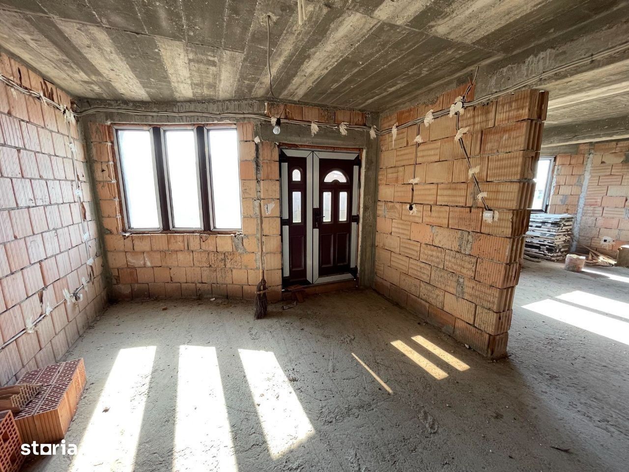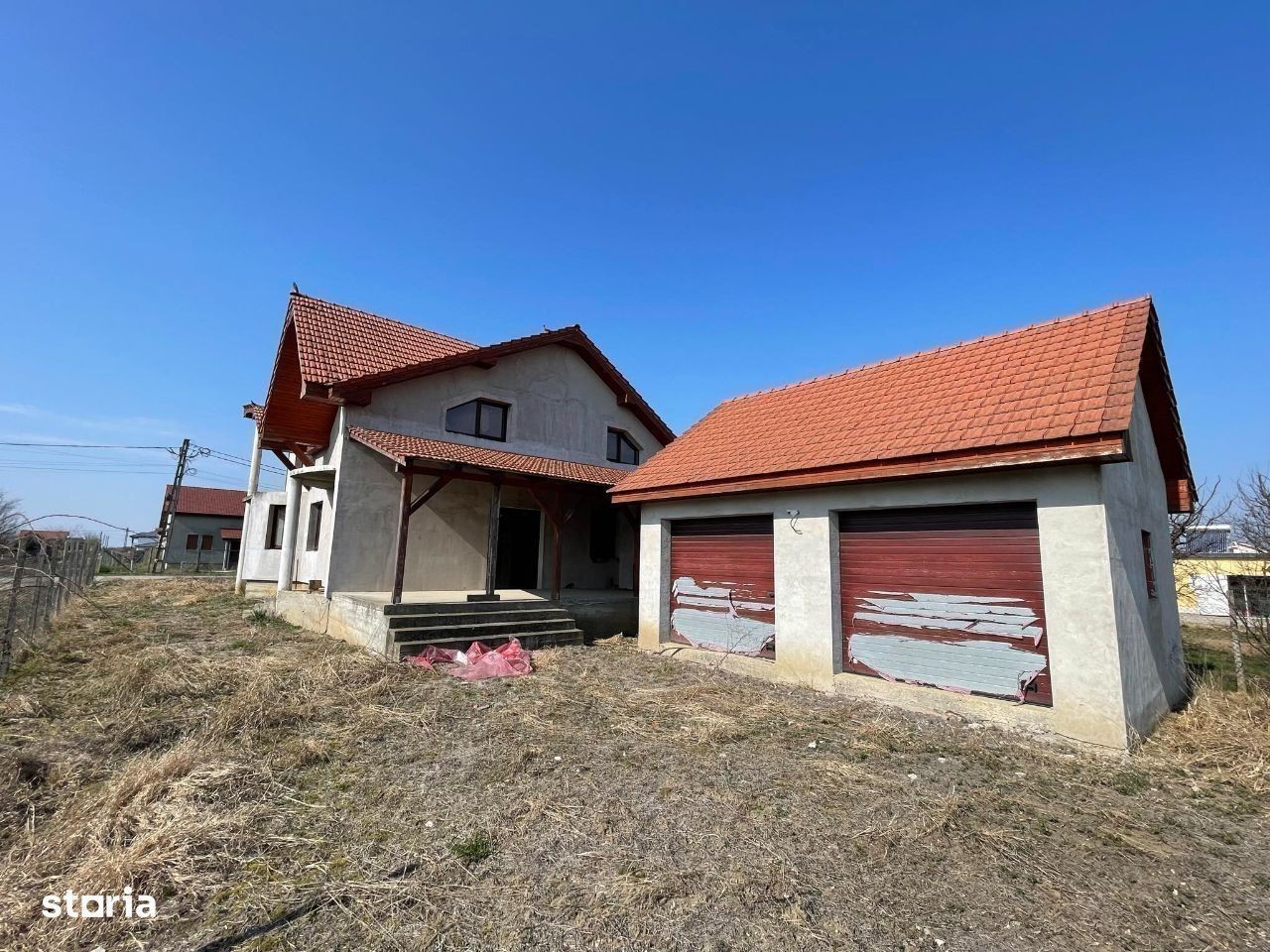 De vanzare casa noua tip P+M situata in Lazuri cu teren aferent de 960 mp si 2 fronturi. Casa cu suprafata construita de 195 mp compusa din 4 camere, living, bucatarie, 2 bai, hol, debara, 2 balcoane, terasa, spatiu tehnic si garaj dublu 30 mp cu porti automate. Casa se preda cu exteriorul semifinisat si cu interiorul in rosu : geamuri termopane si instalatie electrica. Utilitati: apa si curent introduse, canalizare la strada. Pret: 110.000 eur
