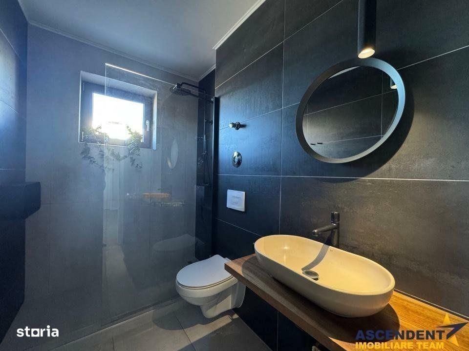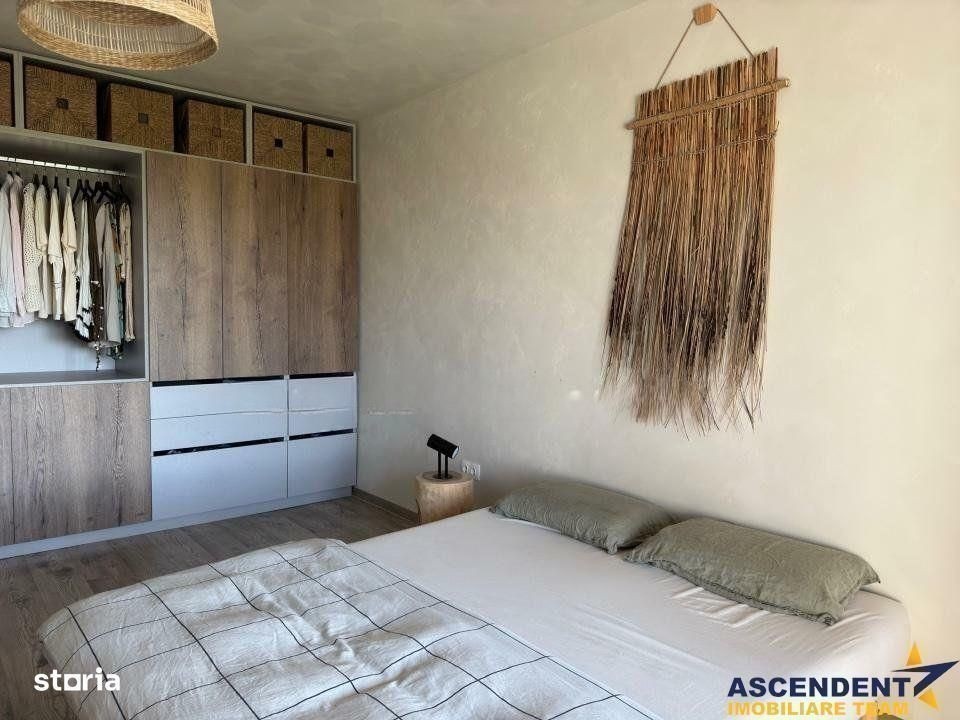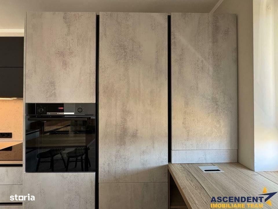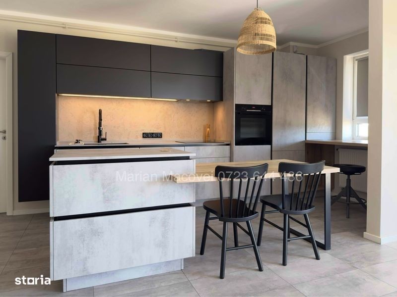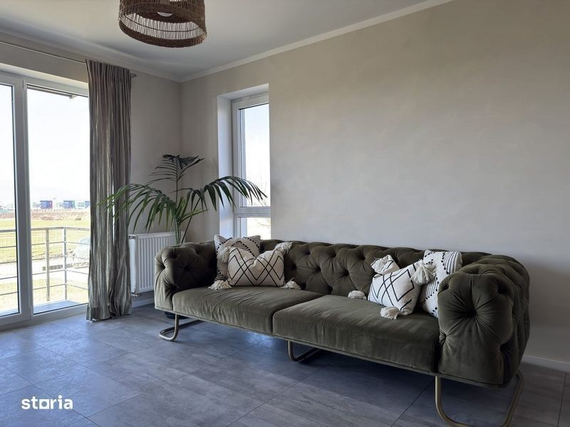 Apartament premium 2.5 camere (61 mp) cu gradina - mobilat si utilat. Clasa energetica B. Apartamantul este de tip 2.5 camere, format din bucatarie si camera de zi open space, dormitor si nursery/birou/dressing. Imobilul este compus astfel: Camera de zi + bucatarie: 35,19 mp Dormitor: 15,11 mp Depozitare: 6,27 mp Baie: 4,56 mp Balcon vitrat: 3,24 mp Terasa: 3 mp Gradina: 35 mp Boxa: 3,29 mp Parcare proprie: Da Schita apartamentului se gaseste in sectiunea fotografii. Apartamentul se vinde mobilat si utilat precum in poze, dotat cu urmatoarele caracteristici: - Mobilier premium lemn masiv nuc / salcam / mungur / pin (Kenosis, Kave home, Zara Home, Karup design) - Mobilier premium feronerie premium Blum / Quartz / MDF / PAL - Canapea 3 locuri 260 cm (Mobila Dalin) - Electrocasnice premium Bosch (Masina rufe, Uscator rufe, Masina vase incorporabila, Combina frigorifica incorporabila, Cuptor incorporabil, Plita inductie) - Electrocasnice premium Falmec (Hota incorporabila 800 mc) - Sanitare premium Blanco / Rak ceramics - Baie cu fereastra si sistem de ventilatie Electrocasnice mici: - Prajitor de paine bosh - Blender high power KitchenAid - Aspirator Rowenta Automatizari smart controlabile din google home/apple homekit/Alexa: - Automatizare electrica Philips Hue (aplicata partial) - Automatizare termica Tado (aplicata partial) - Aspirator Roborok S5 - TV Sony Bravia (diagonala 164 cm) Gradina: - Gradina partial amenajata (gard viu din iedera, gazon, pavele) Apartamentul se afla intr-un bloc de 5 etaje, fiind situat la parter. Zona este complet construita, cu trotuare si drum de acces pavate. Distanta parcuri de joaca: 800 - 1500 m Distanta piata din cartier: 1000 m Distanta Mega Image, Lidl, Penny, Farmacie, Jysk si altele: 1500 - 2000 m Distanta aeroport: 7 km