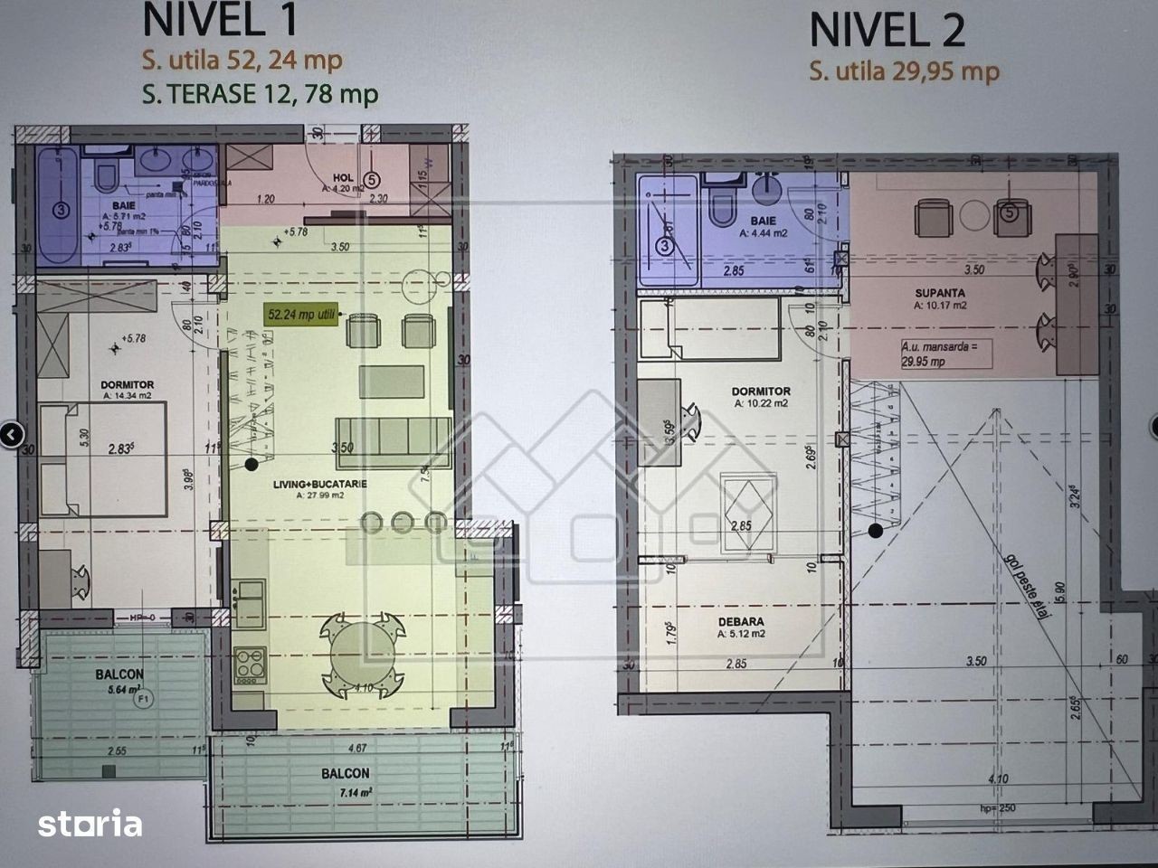 Apartament decomandat 3 camere, penthouse 2 nivele, bucatarie mobilata