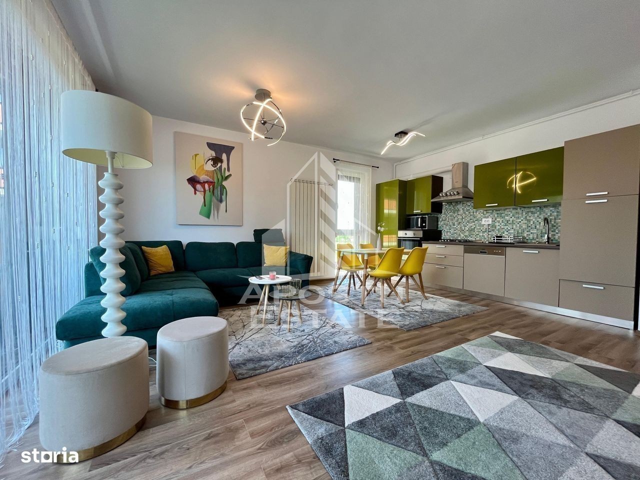 POSTU ESTATE va propune spre inchiriere un apartament de lux cu 2 camere open space in Complexul Rezidential Iris, zona Calea Torontalului Imobilul se intinde pe o suprafata utila de 57 mp si este compartimentat astfel: - hol de acces - living - dormitor - bucatarie open space - baie cu cada - balcon deschis cu iesire din living Apartamentul este complet mobilat si utilat si dispune de: - Geamuri cu plase pentru insecte si rolete automatizate - Aer conditionat - Masina de spalat vase si de spalat haine - Incalzire prin pardoseala Vecinatati: - Spital Premiere - Arta in Nori Gradinita - OMW - Sala de fitness NextFit - Mijloace de transport in comun - Iulius Mall - Auchan Apartamentul dispune de loc de parcare suprateran inclus in pret. Nu se accepta animale de companie si sa se fumeze in incinta imobilului. Va asteptam cu drag la o vizionare! ID intern: CP2646510