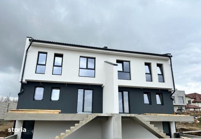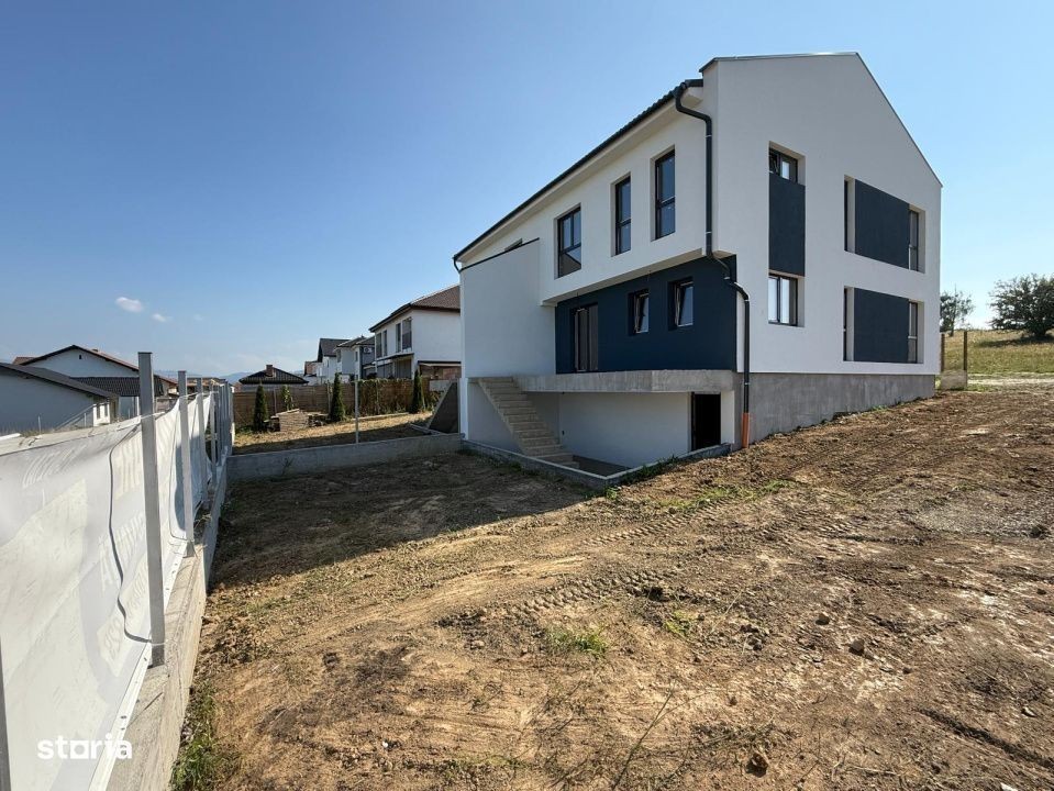 Casa Ti Duplex de vanzare in Caalea Cisnadiei, reper Casa de Apa Locuinta este prevazuta cu 4 camere, o suprafata utila de 120 mp (144 mp construiti), suprafata totala teren 300 mp, o amprenta la sol de 70 mp si o curte libera de 230 mp. Casa beneficiaza si de 2 terase- una de 16 mp, si una de 22 mp si un balcon de 3 mp. Foarte important, casa are si o pivnita in suprafata de 20 mp, si pod, spatii ideale pentru depozitare. Regimul de inaltime al casei este: Subsol+Parter+1E+Pod • Subsol: pivnita cu spatiu tehnic si o terasa; • Parter: hol de acces, living cu scara interioara, 1 baie cu aerisire naturala, 1 bucatarie separata si foarte spatioasa cu iesire pe terasa; • Etaj: hol de acces, 1 dormitor matrimonial cu dressing/baie si balcon propriu, 2 dormitoare si o baie cu geam de aerisire; • Pod: folosit pentru depozitare. Avantaje si beneficii complementare ale acestei case de vanzare in Sibiu: - imobil nou cu priveliste frumoasa spre munti - pivnita spatioasa - dressing sau o a treia baie - curte libera 230 mp - acces auto - terase si balcon - teren imprejmuit si curte partial pavata + spatiu verde - incalzire in pardoseala Casa de vanzare se va preda la stadiul de alb in interior si la cheie in exterior cu aproximatie in iulie 2025. Aceasta casa de vanzare in Sibiu poate fi achizitionata atat cu resurse financiare proprii, cat si cu ajutorul unui credit bancar. Pretul imobilului ramane la fel indiferent de modul de plata. Casa beneficiaza de acces auto. Caile de acces pana la proprietate sunt 90% amenajate si iluminate stradal. Pret: 212.000 Euro Telefon:
