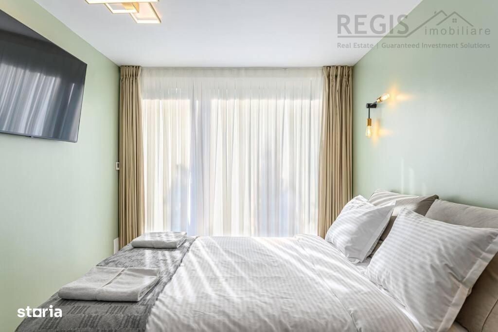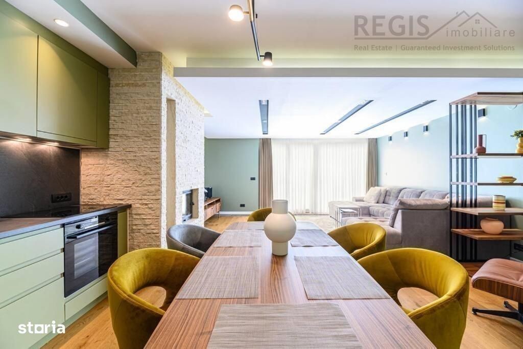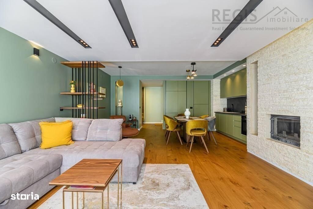 Regis Imobiliare va propune spre vanzare o proprietate exclusivista situata in Poiana Brasov, Complexul Silver Mountain, dispusa pe doua niveluri, parter si etaj. Parterul este compus din living, dormitor, bucatarie, doua bai, si o terasa cu acces din living si dormitor, in suprafata de 40 mp. La etaj regasim 1 dormitor, baie si terasa cu acces din dormitor si baie, in suprafata de 35 mp. Apartamentul are o suprafata utila de 130 mp, la care se adauga terasele (aprox 80 mp). Complexil turistic asigura sevicii de SPA, sala fitness, restuarant, piscina interioara exterioara (incalzita). Cele doua terase generoase ale apartamentului sunt amenajate cu gratar pe gaz, canapele, masa, scaune, substituind cu succes o mica curte. Terasa de la parter are iesire directa spre padure si drumul de acces. Fie ca doresti sa impletesti utilul cu placutul, sa obtii beneficii financiare considerabile prin exploatarea in regim hotelier si sa iti faci si tu concediile aici, fie ca dooresti sa iti bucuri viata locuind permnanent in inima muntilor dar si aproape de civilizatie, proprietatea aceasta poate fi tot ce ai visat. Verdele brazilor si zumzetul padurii te vor trezi de dimineata iar piscurile muntilor te vor incanta fie vara fie iarna. Apartamentul isi rasfata locatarii prin privelisti relaxante din fiecare camera si confort termic sporit. Apartamentul se vinde mobilat si utilat complet, totul fiind armonios imbinat, in culori calde si linii suave. Particularitati care te fac sa te simti minunat in acest apartament: - Usa metalica dotata cu incuietoare smart controlata de pe telefonul mobil; - Pardoseala Gerflor, respectiv placi ceramice in bai; - Incalzire cu ventiloconvectoare; - Geamuri termopan cu tamplarie de aluminiu; - Electrocasnice de ultima generatie; - Mobilier exclusivist de cea mai buna calitate - Pereti interiori finisati cu vopsea lavabila. - Semineul cu lemn natural sa iincalzeasca atmosfera pentru seri pitoresti si zapezi de poveste Locul de parcare subteran este inclus in pret. Vanzatorul este persoana juridica. Comision ZERO