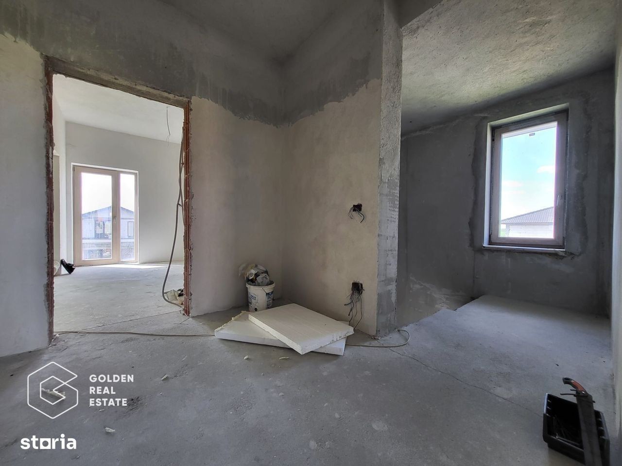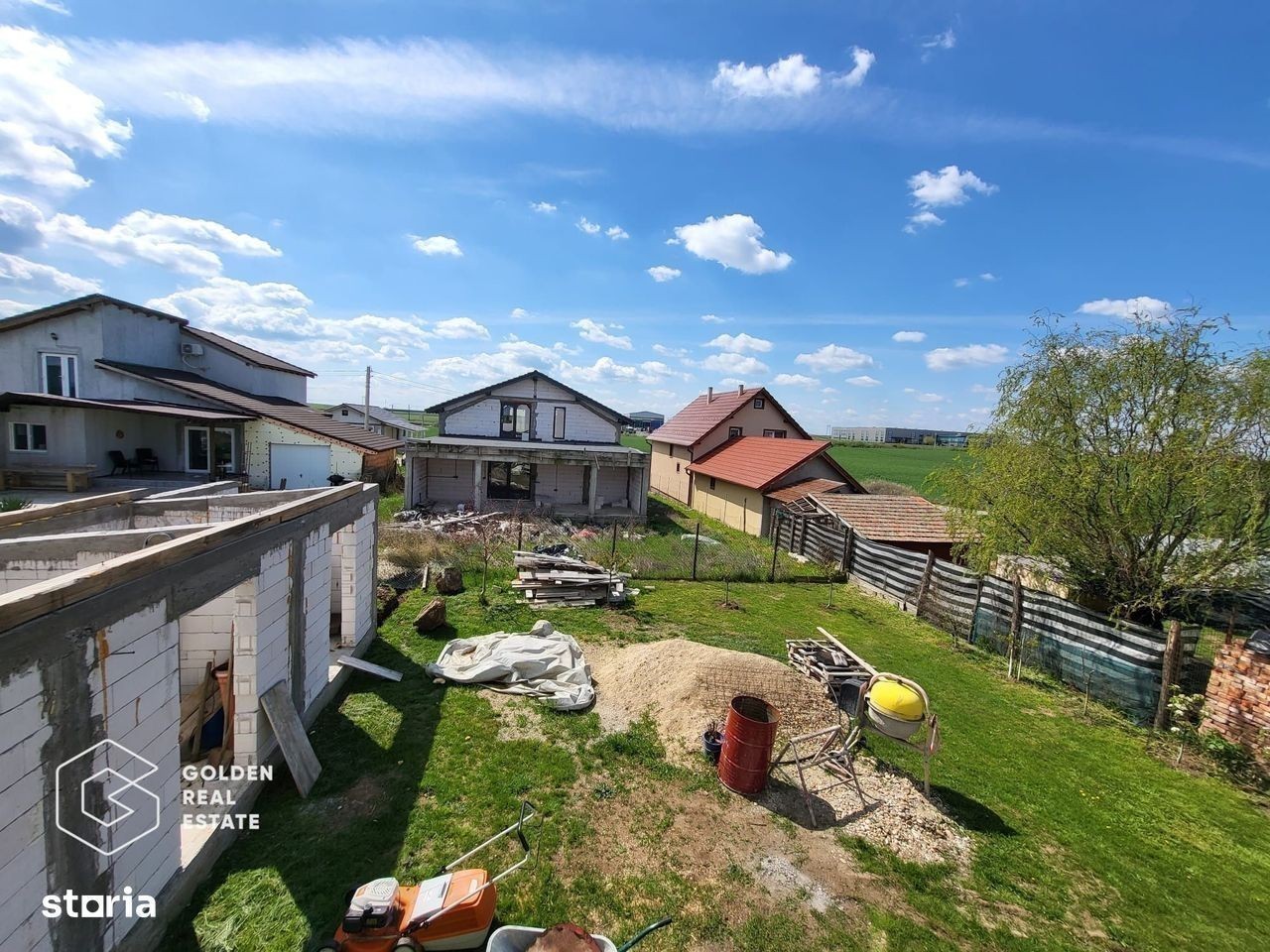 ID: CP2499542 Golden Real Estate Lipova vă propune spre vânzare o casā P+E în localitatea Frumușeni, județul Arad. Aceastā proprietate este situatā în cartierul nou din localitatea Frumușeni, la intrarea dinspre Arad, respectiv la 6 km de cartierul Sinicolaul Mic. Casa este construitā pe 2 niveluri P+E, și este configuratā după cum urmeazā: la parter se intrā într-un hol cu casa scārii spațios, din care intrām într-un living de 40 mp, din care se face accesul într- un spațiu generos open space, care are ca destinație bucătărie si loc de servit masa. La parter se mai gāsește o camerā de 35 mp cu acces la o baie mare, tot la parter existā o ușā care face accesul spre terasa din spatele casei. Etajul are urmātoarea configurație: un hol larg care deservește cele 2 dormitoare mari cu balcoane orientate spre stradā, o baie mare lângā care se aflā un dressing, și încā un dormitor matrimonial de 35 mp cu o baie și un balcon franțuzesc orientat spre spatele casei. Aceastā casā are o suprafațā construitā de 130 mp pe nivel, respectiv 230 mp utili, teren intravilan în suprafață de 500 mp aflat în folosințā gratuitā pe durata existenței construcției, si un front stradal de cca. 17,5 metrii liniari, stradā asfaltatā și liniștitā. Ca și utilitāți casa are apā de la rețea curent trifazat, prister și rețeaua de gaz și canalizare în fața casei. Aceastā casā este dotatā cu geamuri și uși de calitate tripan, încălzire în pardosealā cu repartitoare pe fiecare nivel, fiecare dintre cele 3 bāi au vas de wc și bideu cu rezervoare încastrate în zid, instalații electrice și sanitare în pereți, toate încăperile sunt înalte, spațioase și luminoase, iar pe exterior există termosistem cu poliestiren de 10 cm cu adeziv la gri. Aceastā casā are un view spre pādure, este finalizatā în proporție de 85%, urmând ca și clientul cumpărător sā continue cu finisajele pe interior respectiv gresie, faianțā, parchet, obiecte sanitare, uși interioare și zugrāvealā atât pe interior cât și pe exterior. De asemenea în spatele casei mai existā 2 camere, una tehnicā și o bucatārie de varā din BCA la roșu fārā acoperiș, iar în grādinā existā gazon, câțiva pomi fructiferi și un spațiu pentru terasā. Prețul de 160.000 euro, negociabil. Agent Golden Real Estate.