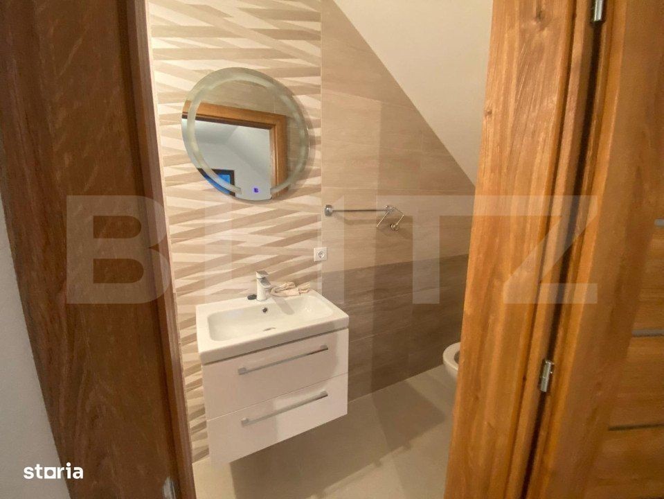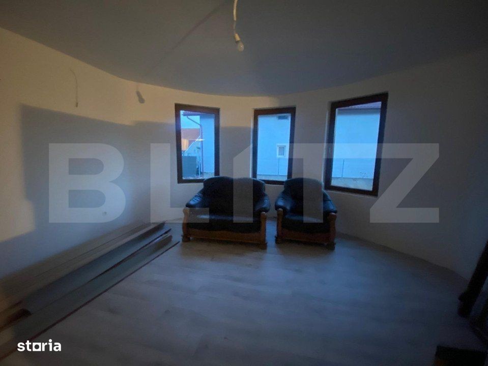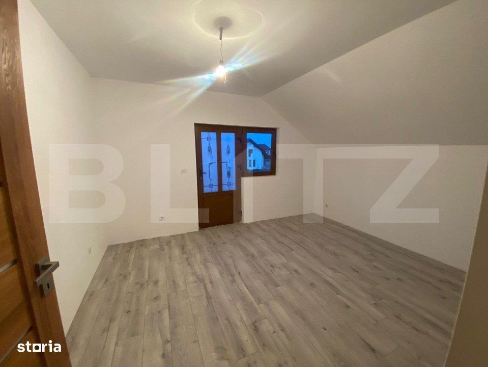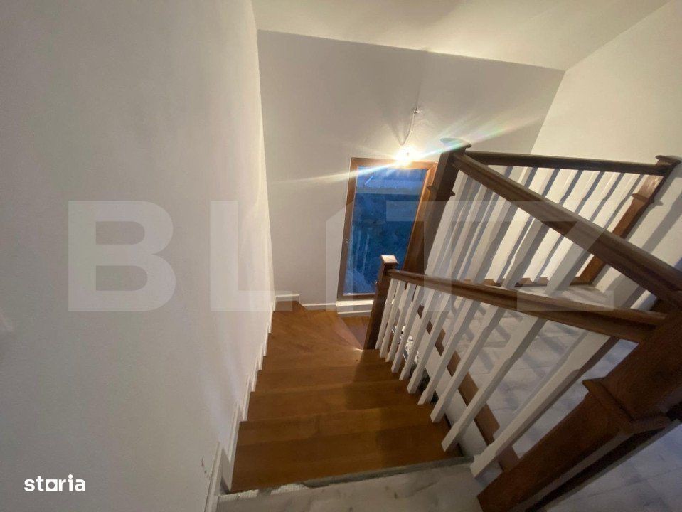 Blitz va propune o casa de vanzare intr-o zona in plina dezvoltare pe o suprafata de teren de 500 mp. Casa este in suprafara de 200 mp utili si este compartimentata astfel: la parter se afla la intrare un hol cu casa scarii, un birou, un living, o bucatarie spatioasa cu o camara in care se afla instalata centrala pe gaz, o baie si o camara. La etaj se afla 3 dormitoare spatioase, o baie cu intrare separata in fiecare incapere dintr-un hol generos.