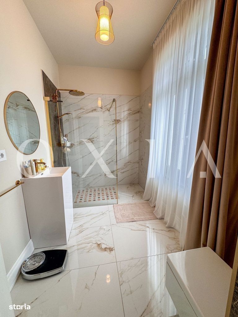 OXIA are placerea de a va prezenta spre vanzare, o vila individuala cu design elegant si dotari de top, situata in una dintre cele mai apreciate zone rezidentiale din Dumbravita - zona Padure. Aceasta proprietate exceptionala, dezvoltata pe un teren de 430 mp, impresioneaza prin arhitectura neoclasica si calitatea materialelor, avand o suprafata construita de 220 mp si o suprafata utila de 160 mp. COMPARTIMENTARE INTELIGENTA SI CONFORT OPTIMIZAT: PARTER: Hol de primire generos Living cu zona de relaxare si dining Bucatarie inchisa cu acces in camera tehnica Dormitor Baie completa Spatiu dedicat depozitarii Terasa acoperita ETAJ: Hol de distributie Dormitor matrimonial cu baie proprie Doua dormitoare secundare Baie principala Balcon Acces catre pod Finisaje si dotari de exceptie: Usi interioare din lemn masiv, cu un design rafinat Ferestre premium cu profil de 90 mm si geam tripan, ce ofera o izolatie superioara si lumina naturala abundenta Parchet multistratificat de inalta calitate Gresie si faianta import Italia Vopsea decorativa San Marco - eleganta si rezistenta in timp Semineu pe lemne cu recuperator de caldura, conectat la sistemul de incalzire Incalzire in pardoseala pe ambele niveluri, cu termostate ambientale individuale Izolatie exterioara cu vata bazaltica de 15 cm Predispozitie pentru instalarea de panouri fotovoltaice Bazin de stocare a apei, pentru un plus de autonomie Resedinta se vinde complet mobilata si utilata, conform prezentarii - cu piese atent alese, care completeaza eleganta spatiului. Facilitati smart home si exterior amenajat: Sistem complet de supraveghere video Videointerfon, sistem de alarma, porti automatizate Garaj cu poarta automata Curte amenajata cu gazon si plante ornamentale, sistem de irigatie automatizat PRET DE ACHIZITIE: 460 000 Euro + comision agentie. Echipa OXIA va sta la dispozitie pe tot parcursul procesului de achizitie, oferind servicii complete de consultanta juridica si financiara. Pentru mai multe informatii sau pentru stabilirea unei vizionari, ne puteti contacta la numarul de telefon