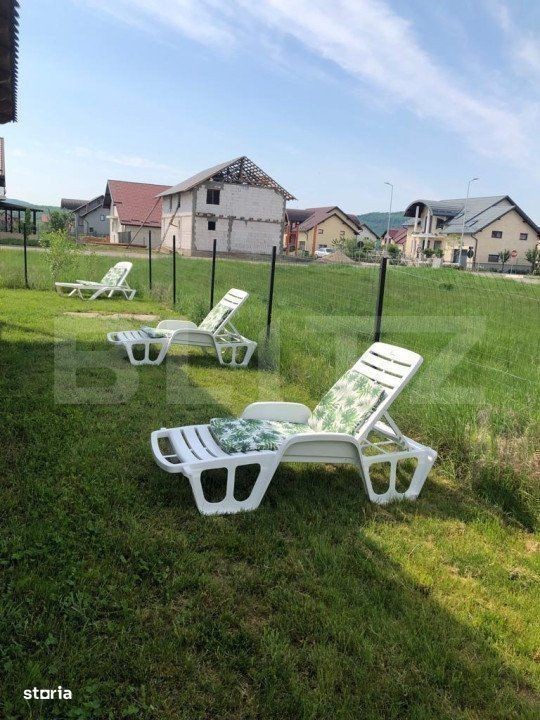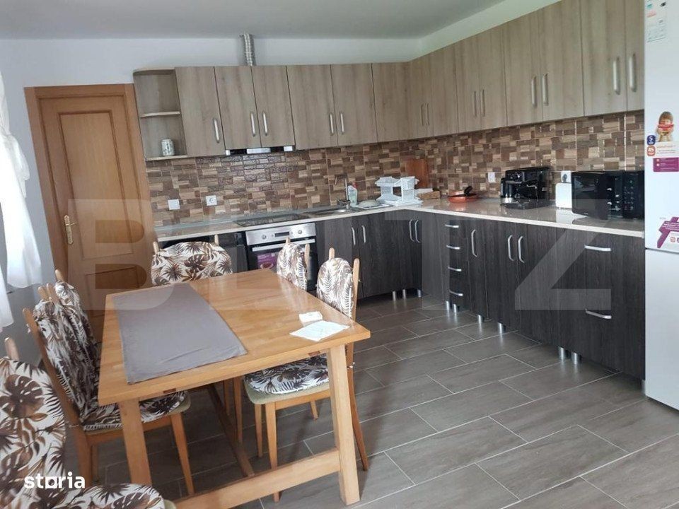 Va propunem o casă spațioasă, situată pe un teren generos de 5 ari, oferă 6 dormitoare, 4 băi și o terasă, ideală pentru relaxare. Cu o suprafață utilă de 220 mp, imobilul este bine compartimentat, asigurând confortul necesar unei familii numeroase sau posibilitatea de a desfășura activități comerciale. Construită în 2021, casa impresionează prin materialele de calitate utilizate: termopane eficiente energetic, faianță și gresie moderne, parchet elegant și acoperiș din țiglă durabilă. De asemenea, locuința este complet mobilată și utilată, oferind tot confortul necesar pentru mutarea imediată. Prețul de 143.000 de euro este negociabil, reflectând raportul excelent între calitatea construcției și spațiul oferit. Această proprietate este o oportunitate rară, potrivită atât pentru locuit, cât și pentru investiții comerciale.