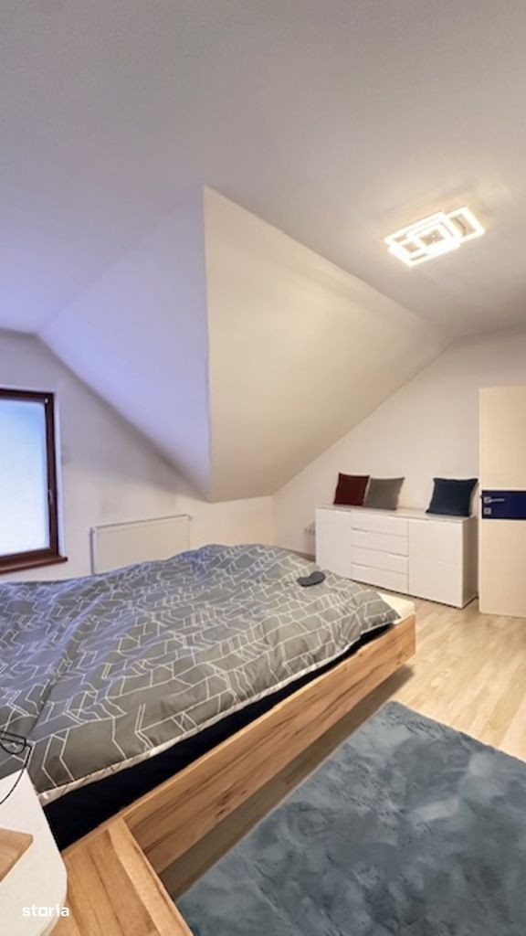 Agentia Imobiliare PrimaCasa va ofera spre vanzare o parte de duplex P+M (AN 2008) finisata la cheie avand microcentrala, aer conditionat, termopan, incalzire pe gaz, izolata exetrior, acoperis tigla, casa avand 157mp sc, iar util aprox. 130mp cu garaj inclus! Casa se imparte in: