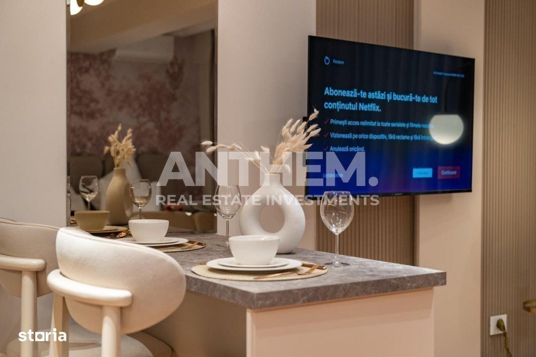 Studio elegant de 40,7 mp - complet mobilat și utilat, în zona OMV Pipera Acest studio spațios de 40,7 mp este situat la etajul 2 din 4 al unui proiect rezidențial modern din zona OMV Pipera, una dintre cele mai căutate locații din nordul Bucureștiului. Amenajat cu atenție la detalii de un designer de interior, locuința se remarcă prin finisaje premium și decoruri actuale, alese cu grijă pentru a oferi confort și stil. Deși este un studio, spațiul a fost excelent compartimentat: zona de zi și cea de noapte sunt delimitate inteligent, astfel încât să ai parte de intimitate și funcționalitate. Bucătăria este complet mobilată și echipată cu electrocasnice de calitate superioară, gata să răspundă nevoilor zilnice. Ideal pentru un student, un cuplu tânăr sau ca investiție cu potențial excelent de închiriere, acest studio este o alegere inspirată pentru cei care își doresc o locuință modernă într-o zonă liniștită, dar aproape de centrele de afaceri, restaurante și mijloace de transport. La pretul afisat se adauga TVA de 9%.