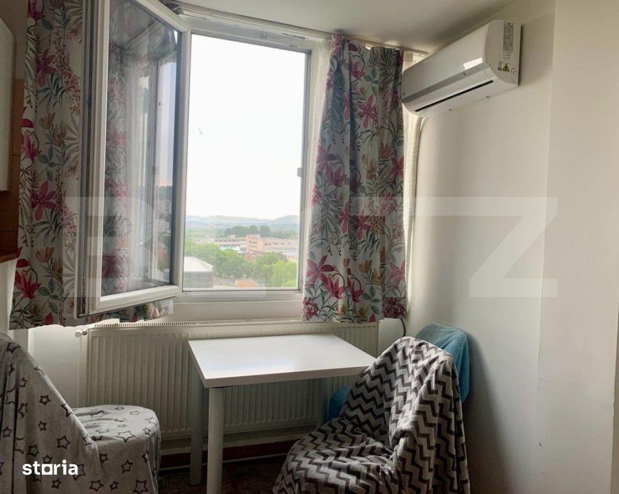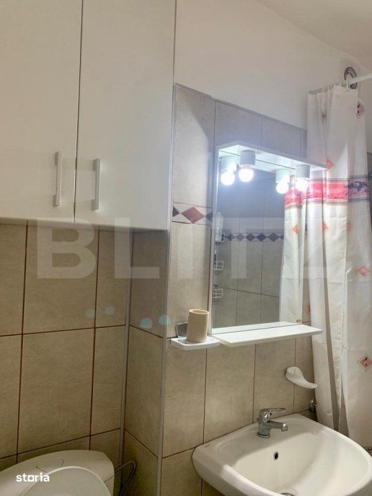 Blitz oferă spre vanzare o garsonieră drăguță și extrem de primitoare, situată la etajul 9 din 9 al unui bloc bine întreținut. Ce înseamnă asta pentru tine? O priveliște de vis, lumină naturală și liniște deplină deasupra agitației orașului! Suprafață: 32 mp Complet mobilată și utilată - tot ce ai nevoie pentru un început confortabil Luminoasă și bine compartimentată Localizare excelentă, aproape de mijloace de transport, magazine și alte facilități Se află la 5 minute cu mașina de centrul orașului și de Universitatea de Medicina și Farmacie și la doar 20 de minute de mers pe jos Perfectă pentru o persoană singură sau un cuplu care apreciază intimitatea și confortul la înălțime. Pentru mai multe detalii sau programarea unei vizionări, nu ezita să mă contactezi!