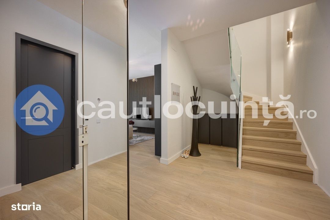 Apartamentul are suprafața totală de 215,7 mp (suprafața utilă 178,43 mp) compartimentat: antreu, 3 dormitoare, bucătărie + living, 2 garderobe, terasă, 3 blocuri sanitare. Confort și spațiu generos Fiecare apartament din cadrul ansamblului este proiectat pentru a oferi un confort deosebit. Cu înălțimi de 3m în living și 2,8m în dormitoare, apartamentele sunt inundate de lumină naturală, creând un ambient aerisit și plăcut. Spațiile interioare sunt gândite pentru a adăuga funcționalitate și eleganță. Sustenabilitate și relaxare Complexul este un proiect certificat Green Homes, axat pe sustenabilitate și protecția mediului. Grădinile private și terasele largi îți oferă nu doar un loc de relaxare, dar și un acces direct la natură, într-un cadru natural liniștit, ideal pentru a te deconecta de ritmul alert al orașului. În plus, ansamblul beneficiază de o infrastructură modernă, incluzând spații verzi comune și locuri de joacă, pentru o viață de familie împlinită. Tehnologie de ultimă generație În ansamblul rezidențial, tehnologia este integrată pentru a asigura un trai modern și eficient. Fiecare locuință este echipată cu sisteme Smart Home, care îți permit controlul complet asupra iluminatului, temperaturii și securității din confortul locuinței tale. Pompele de căldură și fațada ventilată sunt soluții inovative ce contribuie la eficiența energetică și reduc costurile de întreținere, în timp ce mențin un mediu de viață confortabil pe tot parcursul anului. Design de lux Finisajele sunt de cea mai înaltă calitate: parchet din lemn stratificat, gresie și faianță premium, într-o paletă cromatică rafinată ce combină eleganța albului cu auriu. Fiecare detaliu al apartamentelor este gândit pentru a crea un ambient sofisticat și primitor. Bucătăriile și băile sunt dotate cu aparatură modernă de top, iar materialele folosite reflectă standardele înalte de lux și rafinament. Locație deosebită și accesibilitate În apropiere se află centre comerciale, instituții de învățământ și servicii esențiale. Complexul este locul unde confortul, luxul și natura se întâlnesc. Fie că alegi o locuință pentru tine sau pentru întreaga familie, vei descoperi un spațiu care îmbină rafinamentul arhitectural cu funcționalitatea modernă, fiind locul perfect pentru o viață liniștită și de calitate. Pentru mai multe detalii, nu existați să contactați expertul nostru.