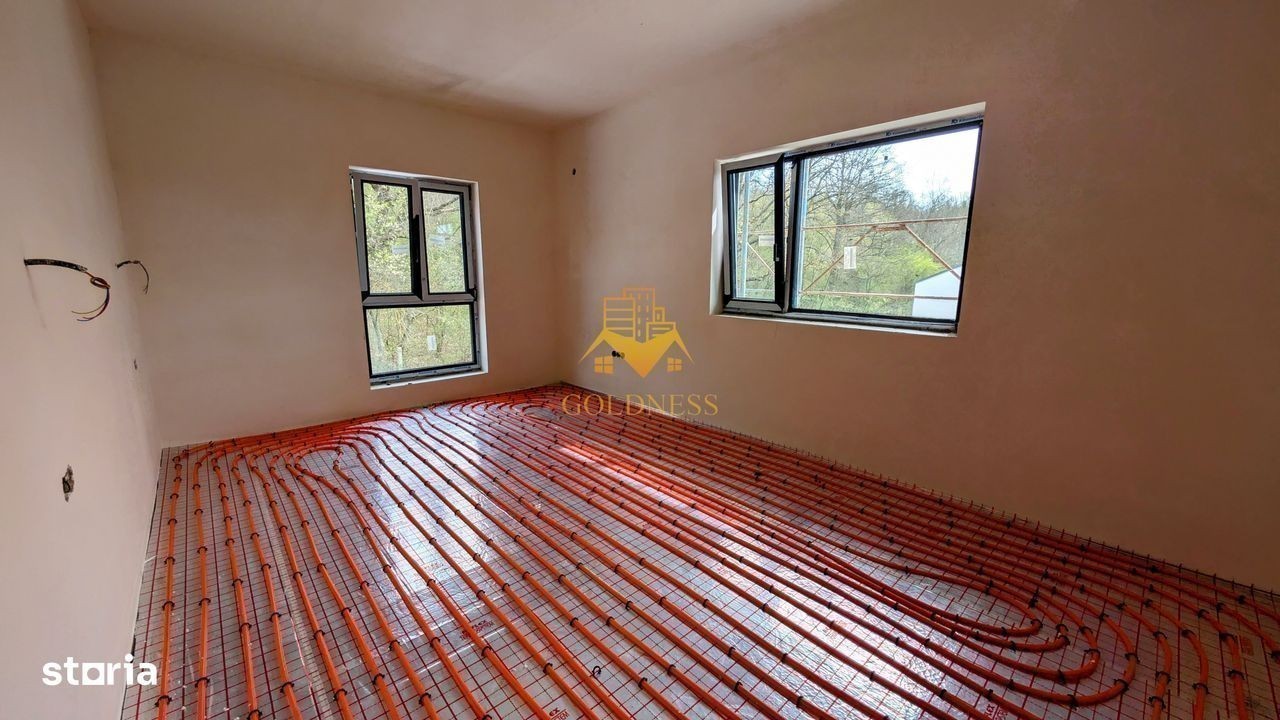 GOLDNESS Imobiliare vă propune spre vânzare un duplex situat în Cluj-Napoca, Valea Chintalului. Casa se vinde la roșu, având o suprafață utilă de 134 mp și o curte generoasă de 300 mp. Compartimentarea este următoarea: Parter: living spațios, bucătărie open space, spațiu tehnic, baie. Etajul 1: 3 dormitoare luminoase, 2 băi. Pod: mansardabil, oferind un spațiu suplimentar ce poate fi amenajat conform preferințelor. Casa beneficiază de încălzire în pardoseală. Pentru intermediere se percepe un comision de 2% din prețul de vânzare.