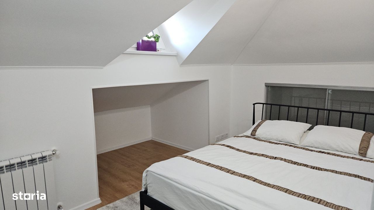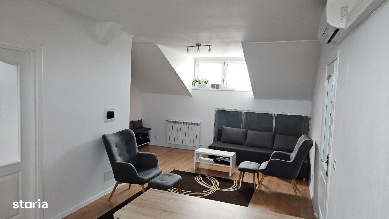 Vand apartament cu 3 camere intr-un bloc nou construit in anul 2008, doar 2 apartamente pe etaj, pe strada Bucegi (in zona de case), la mansarda. Blocul a fost construit pe cadre de beton, cu zidarie de caramida, acoperis cu tabla tip Lindab, este bine izolat pe exterior cu polistiren si in acoperis cu vata bazaltica, cu facturi mici la utilitati.