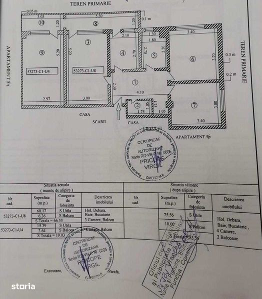 Este singurul apartament de 4 camere cu vedere directa in Piata Unirii, acesta dispune de o compartimentare decomandata, fiind compus din: living, 3 dormitoare, bucatarie, vestibul, debara, baie, si un balcon generos, toate acestea avand suprafata utila totala de 85.56 mp. -Living : 15.60.mp -Dormitor matrimonial: 15.60 mp -Dormitor: 12.58 mp -Dormitor: 10.02 mp -Bucatarie: 5.67 mp -Baie: 4.8 mp -Debara: 1.84 mp -Vestibul: 9.45 mp -Balcon : 10 mp Suprafata utila totala - 85.56 mp Apartamentul este izolat termic pe exterior cu polistiren expandat de 10cm, dispune de o centrala termica pe gaz Bosch, tamplarie termopan PVC, instalatia electrica este refacuta cu module Bticino (cablu de retea si tv in fiecare camera trase prin pereti), parchet laminat in camere.