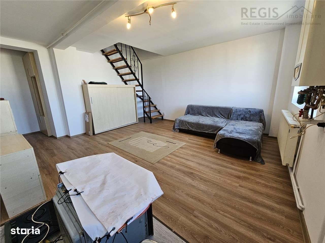 PROPRIETAR! La 5 minute de zona Coresi și 15 minute de centrul Brașovului, propun spre vânzare un apartament doua camere, pe str 13 Decembrie zona Făget. Apartamentul este la etajul 5/5, are o suprafață de 53 mp, dispune de un hol, living + bucătărie, de scară interioara care duce la etaj unde se afla dormitorul și baia. Apartamentul este construit în 2011, are centrala proprie și se vinde mobilat si utilat conform imaginilor.