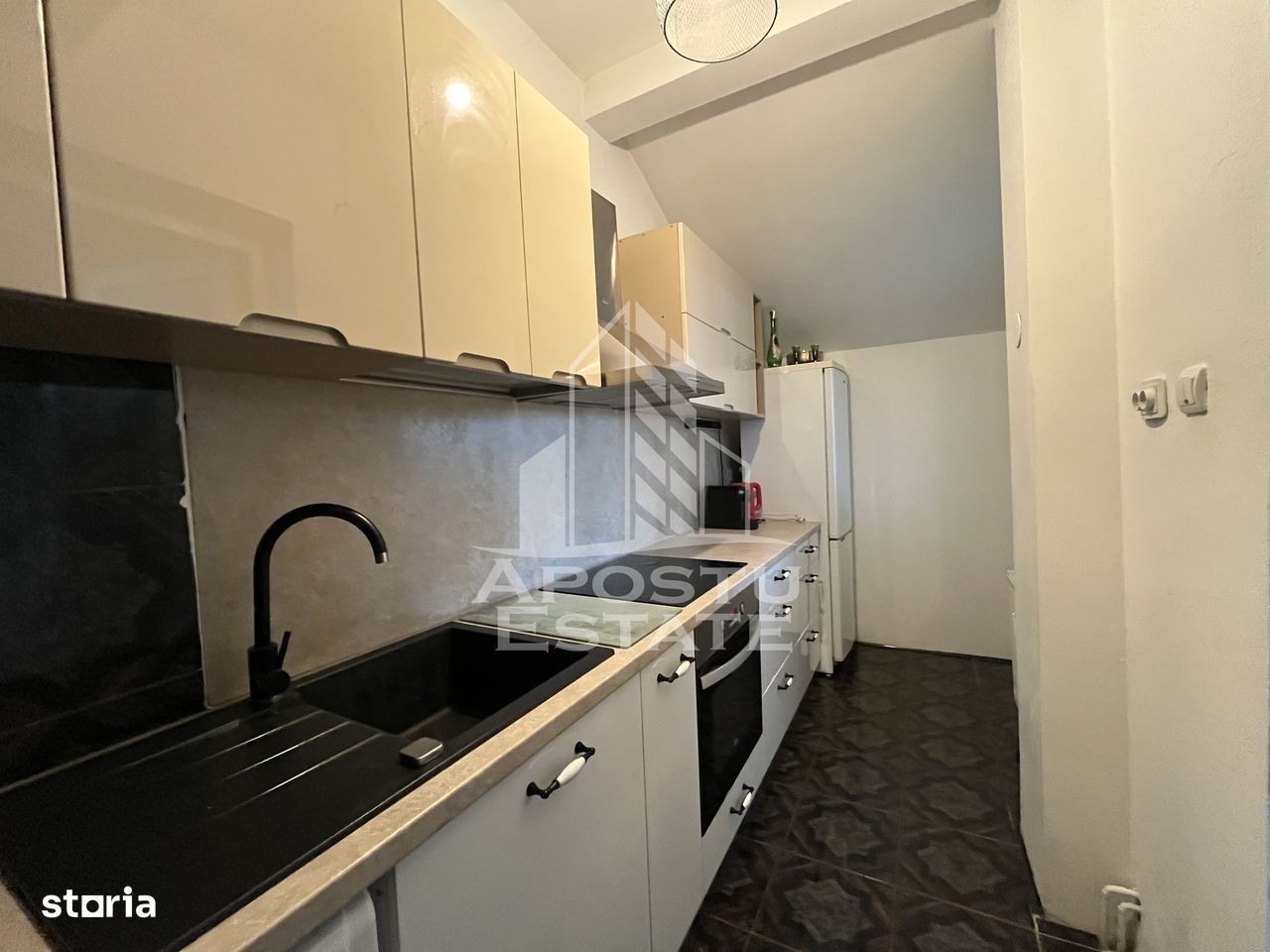 Apostu Estate va propune un apartament semidecomandat cu 2 camere aflat in zona Lipovei. Apartamentul a fost renovat complet si este situat la etajul 1 in cadrul unei vile cu acoperis de tigla, cu curte privata de aprox 100 mp. Vecinatati: - Iulius Mall - mijloace de transport in comun - Wendy College - restaurante - centre comerciale Compartimentare: - hol de acces - living luminos - dormitor cu pat matrimonial si dulap tip dressing si balcon deschis - bucatarie complet mobilata si utilata - baie cu dus walk-in si geam -curte proprie Confortul termic este asigurat prin centrala proprie prin calorifere si prin sistemul de aer conditionat. Va asteptam cu drag la o vizionare!