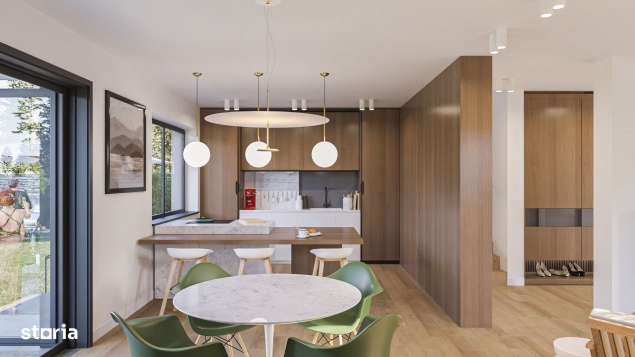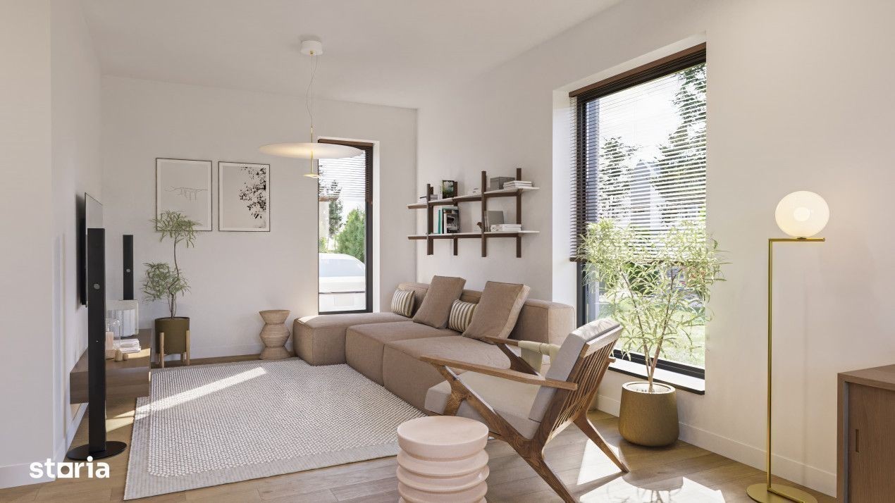 Descoperă Vila Joy, noul model de casă cu etaj disponibil în Faza II a Proiectului Proxim Residence, și bucură-te de toate avantajele unei locuințe de top! Vila Joy este concepută să te impresioneze prin eleganță și spațiu generos, oferindu-ți confortul și siguranța de care ai nevoie. Construită cu materiale de cea mai bună calitate, această locuință este destinată să devină căminul tău pentru mulți ani. Cu o suprafață utilă de 112 mp, vila include 4 camere, dintre care 3 dormitoare la etaj (unul matrimonial cu baie proprie), un living spațios și o bucătărie modernă. Dispune de 3 băi (una la parter și două la etaj) și o terasă accesibilă din living, ideală pentru momente de relaxare. Suprafața totală a terenului este de 430 mp, cu 350 mp de curte privată. Amplasată la ieșirea din cartierul Triaj, în apropierea localității Harman, vila este la doar 5 minute de Coresi Mall și la 10 minute de Centrul Civic al Brașovului. Calitatea construcției este asigurată prin utilizarea de materiale premium, precum cărămidă de 30 cm grosime, termopan cu 3 straturi de sticlă (GEALAN S9000), vată minerală bazaltică pentru izolația exterioară și spumă rigidă cu celulă închisă pentru izolația termică a tavanului. Finisajele includ ceramică rectificată și multe alte detalii de calitate. Dotările standard cuprind încălzire prin pardoseală, ușă de intrare cu toc termic de la Porta, o terasă amenajată și loc de parcare în curtea interioară. Nu rata șansa de a deveni proprietarul acestei locuințe de vis, situată într-o locație ideală, care îți oferă liniște și aer curat, fără a sacrifica accesul rapid către oraș. Suntem nerăbdători să îți prezentăm toate detaliile și să te ajutăm să faci primul pas spre o nouă viață la Proxim Residence. Prețul nu include TVA. Sună-ne pentru a afla toate beneficiile de care te vei bucura ca membru al comunității Proxim Residence și pentru a programa o vizionare.