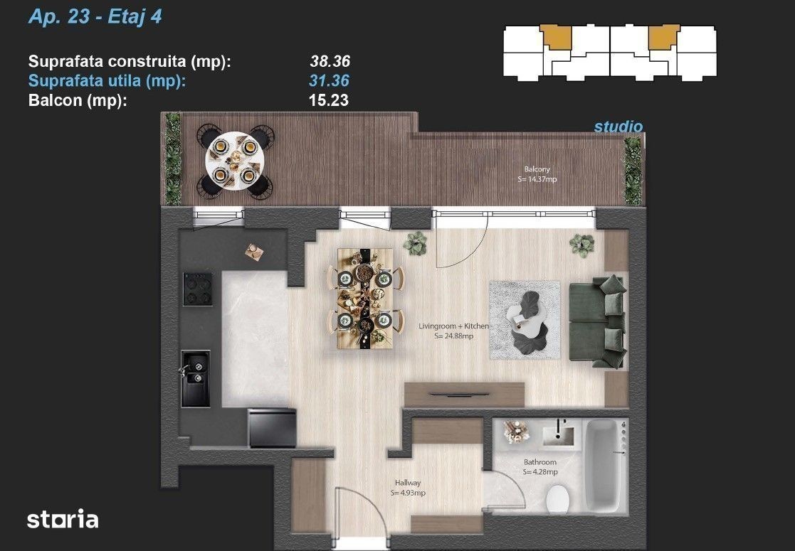 TERASA 15 MP | Garsoniera METROU PACII Militari | NOU