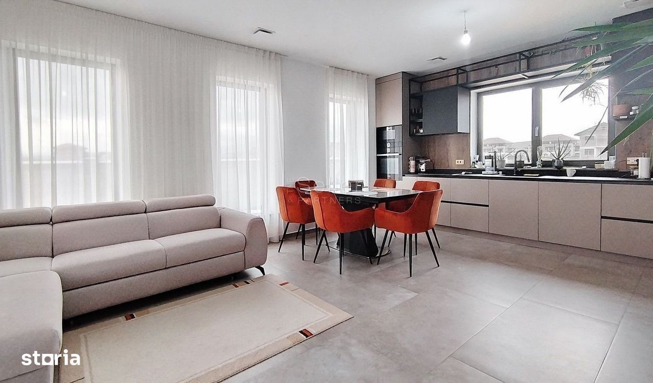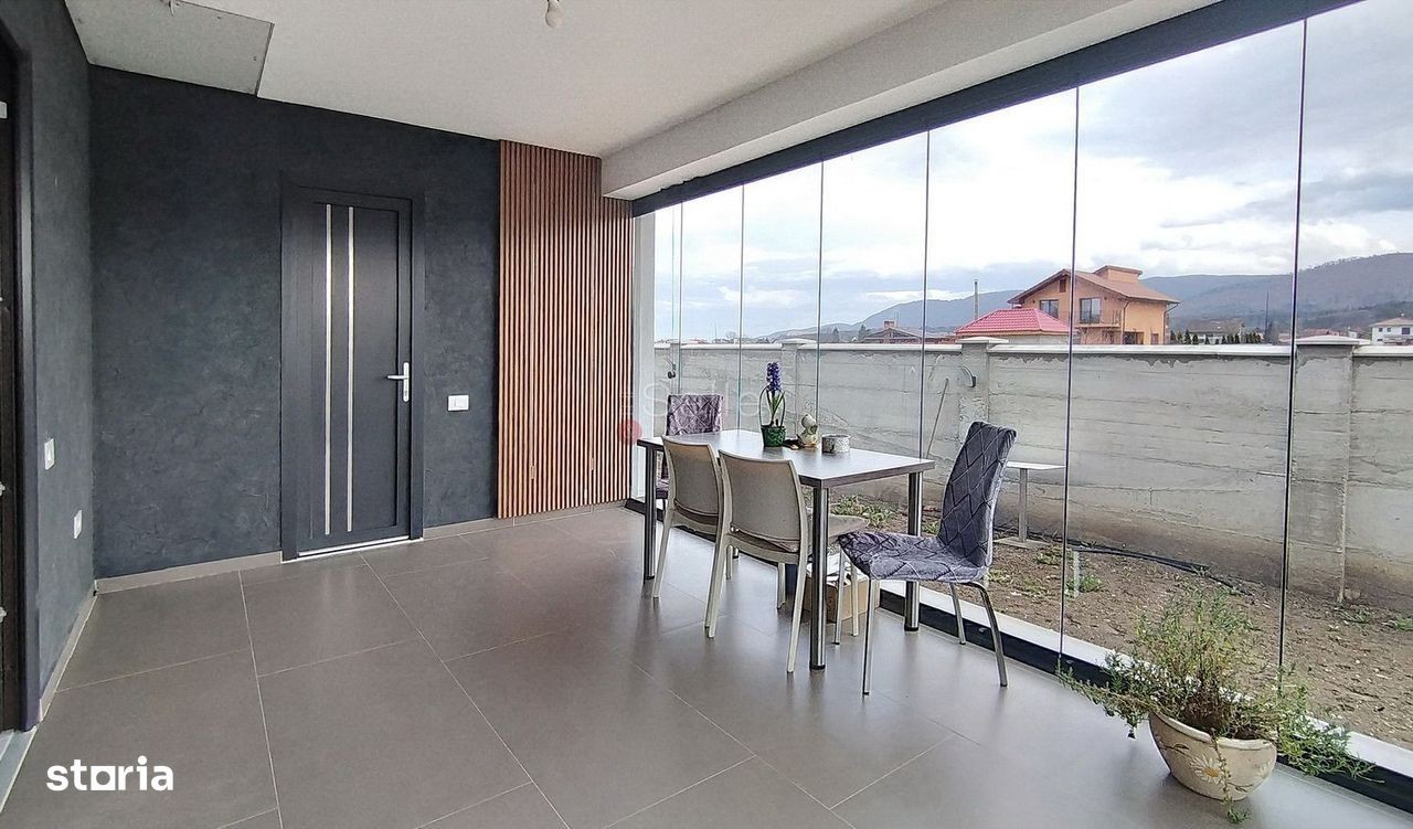 LOCALIZARE: Acest imobil este situat in Cristian, in zona de constructii noi, la 2 minute distanta de iesirea pe nodul de autostrada care leaga Brasovul de Zona Bran. COMPARTIMENTARE: Cu regim de inaltime Parter, vila este dispusa astfel: PARTER: - living, de tip open-space, cu acces la terasa | suprafata generoasa. - zona de dining, care este inclusa in zona de zi. - bucataria, care este de tip open space, aceasta fiind inclusa in zona de zi. - zona de depozitare - 2 dormitoare, acestea fiind deservite de o baie. - un grup sanitar, care detine aerisire ventilata. - un birou. - un spatiu tehnic. - terasa generoasa inchisa cu sticla, cu acces atat din gradina cat si din casa, are in componenta o baie. DOTARI: - pompa de caldura. - sistem de ventilatie cu recuperator de caldura. - incalzire in pardoseala. - tamplarie PVC, cu geam termopan marca Q fort. - terasa exterioara, de cca 15 mp; - 2 locuri de parcare, in curte; - canalizare, curent, apa, gaz la cca 300m. Tranzactionarea proprietatii se va face cu mobilierul aferent prezentei ofertari. IMPREJURIMI: Imobilul este situat intr-o zona de vile si blocuri, accesul auto, pana zona de centru a orasului Cristian facandu-se in cca. 10 minute. ATRACTII ZONA: Magazine FORMA ACHIZITIONARE: Se accepta plata prin accesare credit. NOTA: Informatiile prezentate reflecta situatia reala a proprietatii, fara a constitui o oferta contractuala. Aceste date au fost obtinute verbal, de la titularul de drept al imobilului. Structura acestei prezentari nu poate fi reprodusa, fara acordul scris al The Seller and Partners.