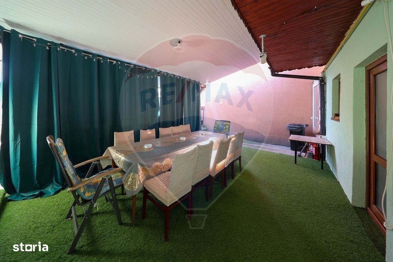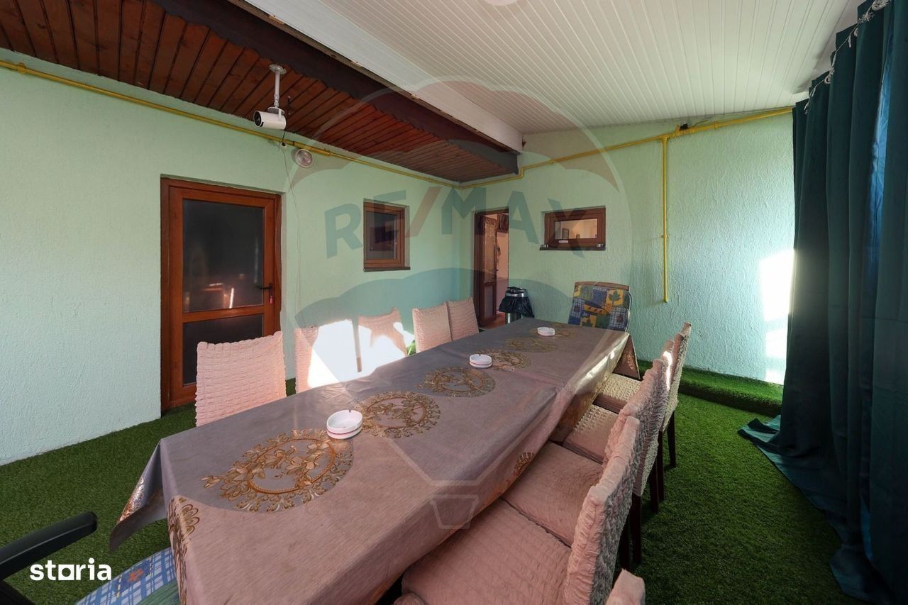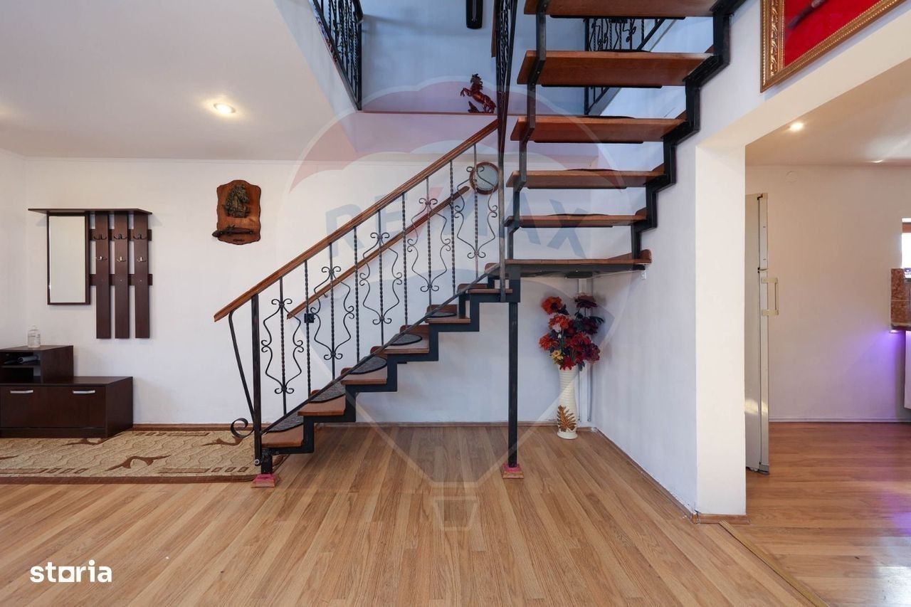 Vă prezentăm o oportunitate unică: o casă modernă, ideală atât ca locuință familială, cât și ca afacere în domeniul turismului. Casa este alcătuită din parter și etaj, cu o compartimentare excelentă: Parter: Living spațios, ideal pentru relaxare; Bucătărie open space, complet utilată; Un dormitor primitor; O baie modernă dotată cu jacuzzi; Un dormitor cu baie proprie, pentru un plus de intimitate; Terasă acoperită, amenajată cu videoproiector, perfectă pentru seri memorabile alături de familie și prieteni; Spațiu de depozitare si centrala. Etaj: 3 dormitoare luminoase și confortabile; O baie spațioasă; Living generos, perfect pentru socializare; Balcon cu vedere către curtea proprie. Curtea este un spațiu generos, care completează perfect proprietatea, oferind loc suficient pentru activități recreative, grădinărit sau amenajarea unui spațiu de joacă. Casa este situată la o distanță scurtă față de oraș, oferind acces rapid la toate facilitățile urbane, dar și liniștea specifică unei zone rezidențiale. Această proprietate poate deveni locuința perfectă pentru o familie sau o investiție sigură și profitabilă în domeniul ospitalității. Monitorizare video. Porti automate. Statia de autobuz la 5 minute distanta. Scoala si magazine in zona. Pentru mai multe informatii si vizionari, va rog sa ma contactati! COMISION 0
