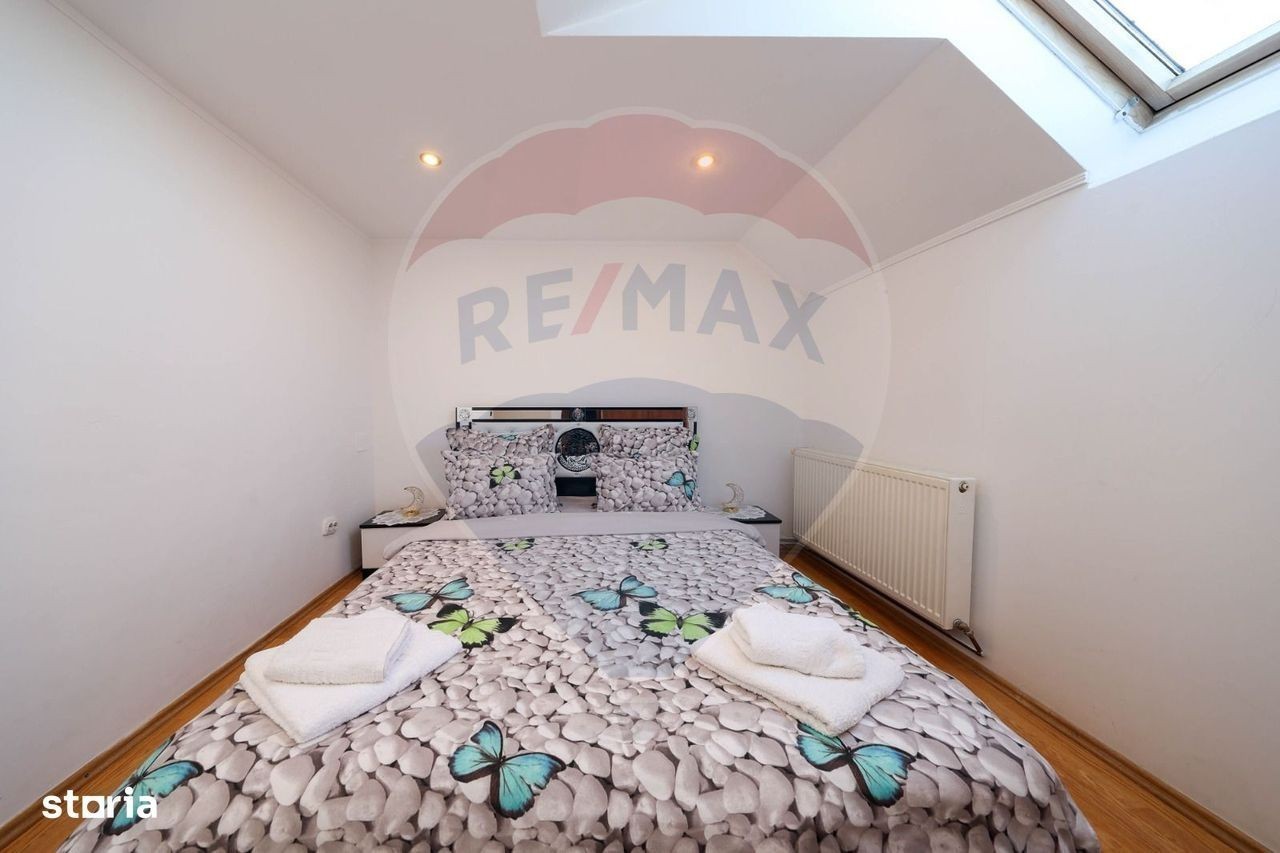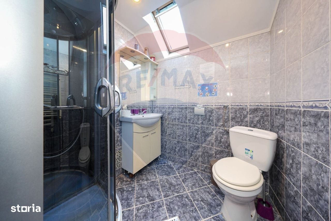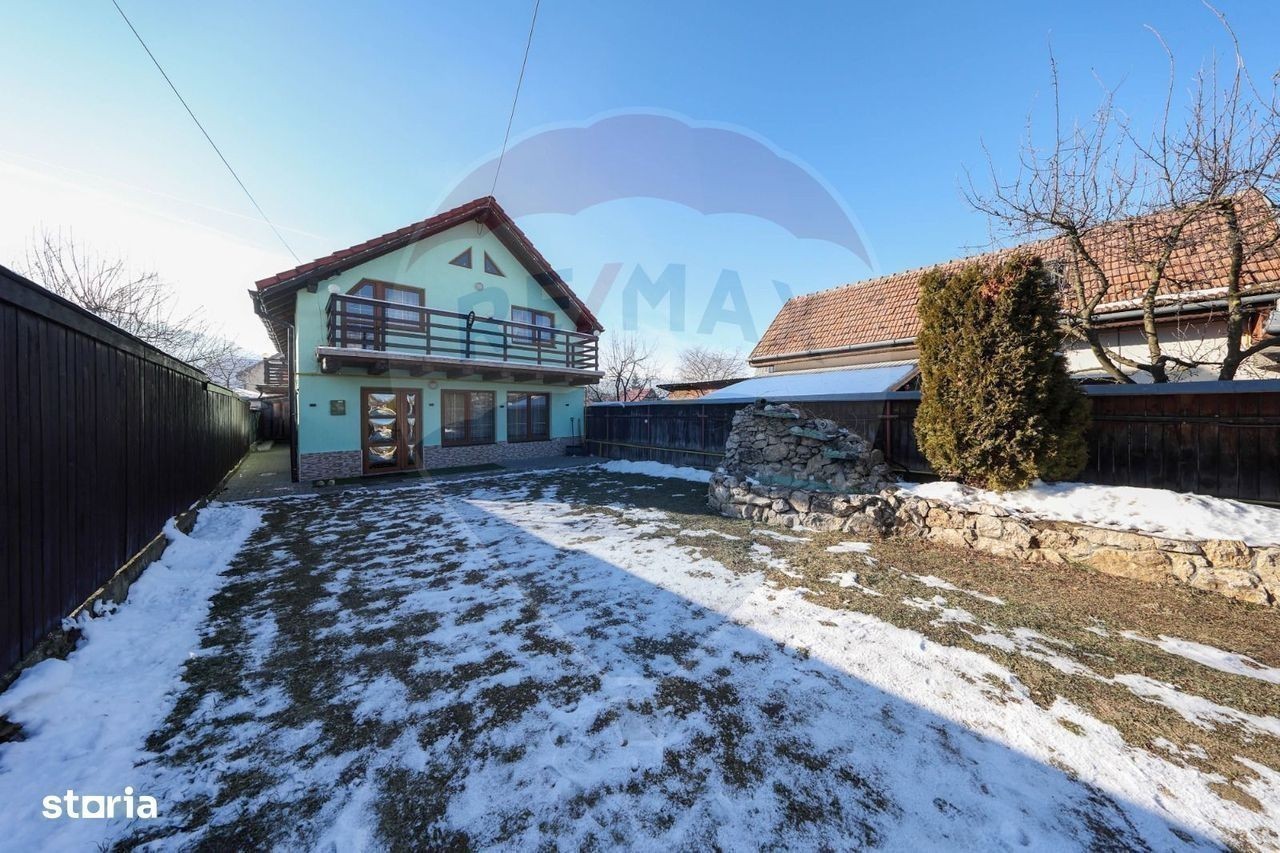 Vă prezentăm o oportunitate unică: o casă modernă, ideală atât ca locuință familială, cât și ca afacere în domeniul turismului. Casa este alcătuită din parter și etaj, cu o compartimentare excelentă: Parter: Living spațios, ideal pentru relaxare; Bucătărie open space, complet utilată; Un dormitor primitor; O baie modernă dotată cu jacuzzi; Un dormitor cu baie proprie, pentru un plus de intimitate; Terasă acoperită, amenajată cu videoproiector, perfectă pentru seri memorabile alături de familie și prieteni; Spațiu de depozitare si centrala. Etaj: 3 dormitoare luminoase și confortabile; O baie spațioasă; Living generos, perfect pentru socializare; Balcon cu vedere către curtea proprie. Curtea este un spațiu generos, care completează perfect proprietatea, oferind loc suficient pentru activități recreative, grădinărit sau amenajarea unui spațiu de joacă. Casa este situată la o distanță scurtă față de oraș, oferind acces rapid la toate facilitățile urbane, dar și liniștea specifică unei zone rezidențiale. Această proprietate poate deveni locuința perfectă pentru o familie sau o investiție sigură și profitabilă în domeniul ospitalității. Monitorizare video. Porti automate. Statia de autobuz la 5 minute distanta. Scoala si magazine in zona. Pentru mai multe informatii si vizionari, va rog sa ma contactati! COMISION 0