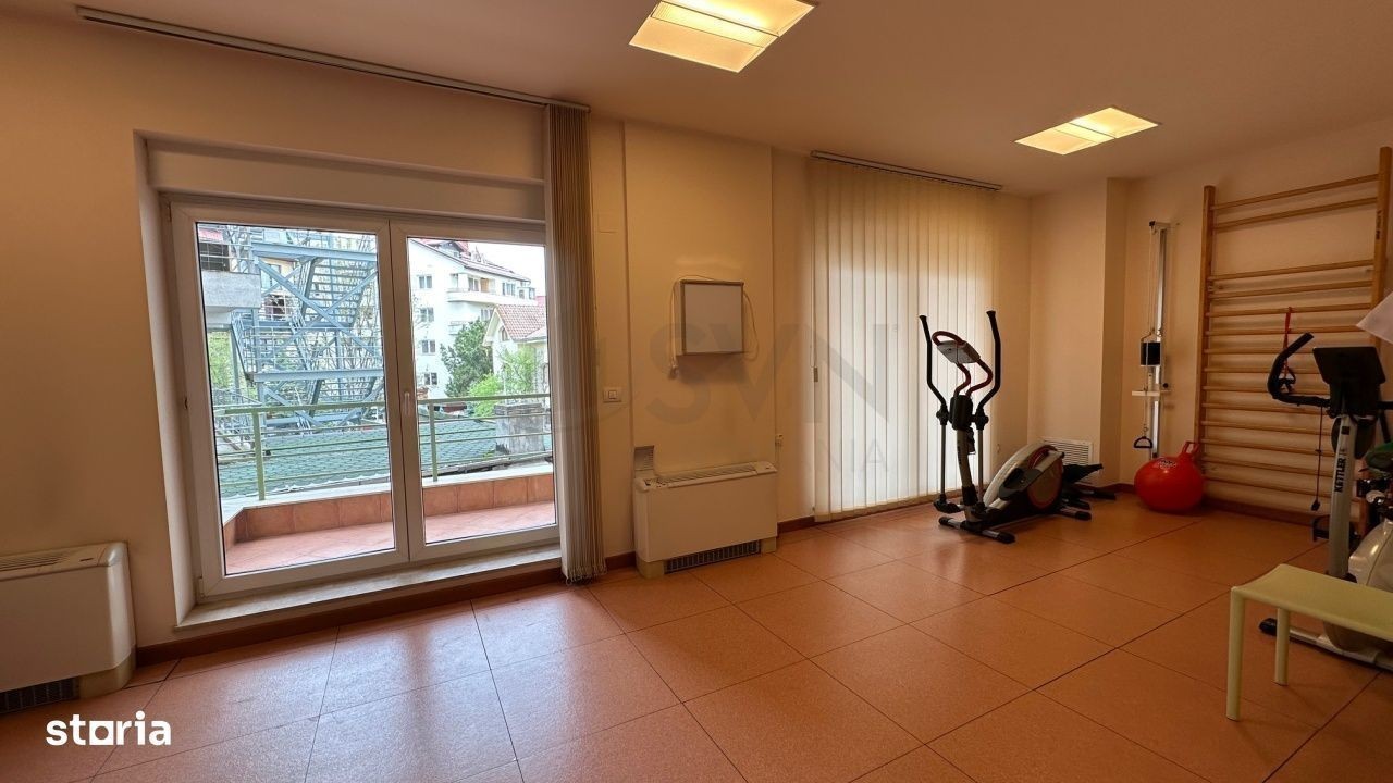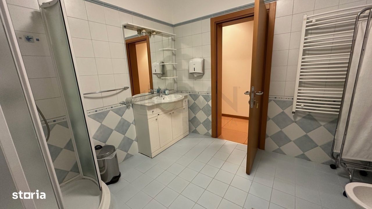 REA1023287 SVN Residentialist Pipera va propune spre inchiriere un spatiu extrem de generos, pretabil pentru cabinet medical sau clinica medicala, situat in zona de Nord a Bucurestiului. Localizare excelenta, la doar cateva minute de mers pe jos de Parcul Herastrau si statia de metrou Aurel Vlaicu. Apartamentul este situat la etajul 1 din 6, intr-un imobil construit in anul 2005. Dispune de supraveghere video, paza 24/7 si este dotat cu lift. 2 locuri de parcare sunt incluse in pret: unul suprateran si unul subteran. Spatiul, adaptabil, mobilat si utilat, ofera toate avantajele necesare pentru desfasurarea activitatii medicale si nu numai, in cele mai bune conditii. Suprafata construita: 294,73 mp Suprafata utila: 266,33 mp Incalzire si racire prin ventiloconvectoare Compartimentare optima, camere spatioase si luminoase, bucatarie complet mobilata si utilata: Camera 1: 19.89 mp Baie 1: 5.62 mp Balcon 1: 12.48 mp Bucatarie: 12.49 mp Camera tehnica: 2.40 mp Hol: 49.22 mp Spatiu depozitare 1: 5.56 mp Camera 2: 27.84 mp Spatiu depozitare 2: 5.73 mp Baie 2: 7.17 mp Camera 3 (sala asteptare): 19.64 mp Hol 2: 13.28 mp Camera 4: 22.33 mp Spatiu depozitare 3: 3.85 mp Baie 3: 7.09 mp Camera 5: 24.03 mp Balcon 2: 15.92 mp Camera 6: 19.19 mp Baie 4: 7.83 mp Spatiu depozitare 4: 5.74 mp Baie 5: 7.43 mp Pentru mai multe informatii, nu ezitati sa ne contactati. Va asteptam la vizionare!