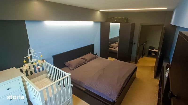 Apartamentul este situat in zona centrala a orasului, langa Tribunal, la faleza Dunarii, impartit pe doua etaje, la primul nivel bucataria cu livingul unite intr-un open space, plus o baie. La etaj sunt doua dormitoare foarte spatioase, o baie si un dressing. Apartamentul se vinde complet mobilat si utilat ca in foto. Tamplarie tripan Salamander. Instalatii electrice si sanitare noi Sistem iluminare led in toata casa cu intrerupatoare touch si telecomenzi Incalzire in pardoseala in toata casa, pe doua zone (parter si etaj) controlate din telefon si/sau termostate wireless. Mobila bucatarie, living si dormitoare, Ikea Scara interioara din lemn de fag Parchet laminat rezistent la apa la parter si mocheta la etaj Boxa de depozitare, in acte, cat suprafata apartamentului, in subsol curat si igienizat,pregatita pentru a putea fi folosita. Apartamentul este liber,va puteti muta imediat. Persoana de contact-Gabriela