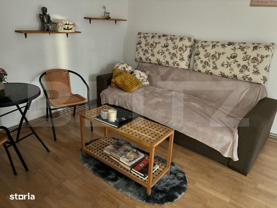 Blitz va prezinta o garsonieră de vânzare - 27 mp, complet mobilată, într-o zonă excelentă! Descoperă această garsonieră cochetă, perfectă pentru locuit sau investiție! Proprietatea are o suprafață de 27 mp și este complet mobilată și utilată, gata pentru mutare imediată. Dotări moderne: Centrală termică proprie Aer condiționat Parchet și mobilier de calitate Mașină de spălat, frigider Locație excelentă, cu acces rapid la magazine Lidl și Profi - doar 5 minute de mers pe jos!