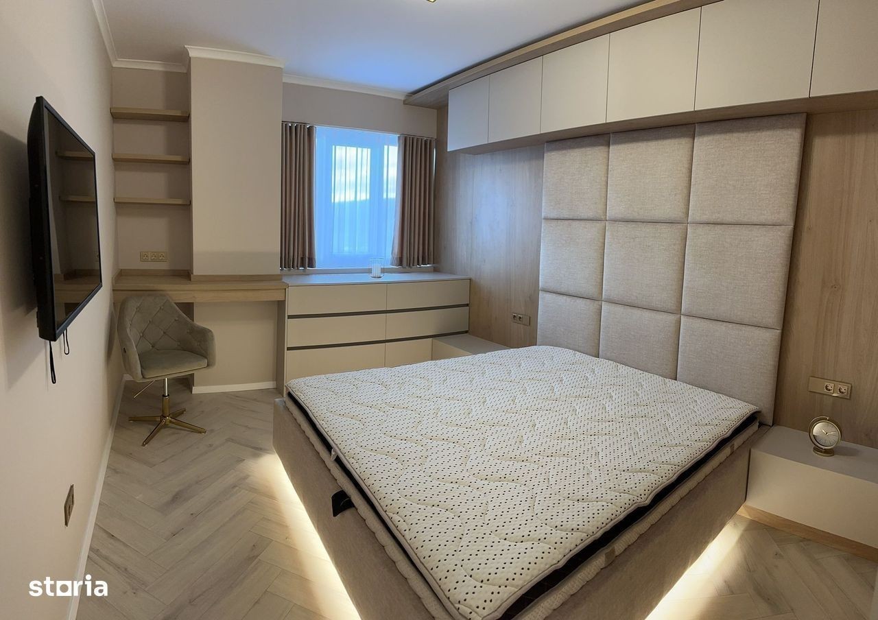 Agentia Mao Imobiliare I/2212RA Echipa Mao Imobiliare ofera spre inchiriere, un apartament cu 2 camere modern, situat pe Calea Sighisoarei, in cartier rezidential nou - cu parcare proprie, parc pentru copii, paza si supraveghere video, receptie si spatii verzi, in plina dezvoltare imobiliara, in apropiere de unitati de invatamant, parcuri de joaca pentru copii, statie pentru mijloacele de transport in comun, Mall si magazine. Apartamentul se afla la etajul 1 al unui bloc constuctie noua, cu 9 etaje, izolat termic exterior, si are o suprafata utila de 56 mp + balcon de 6 mp, are compartimentare decoamandata, confort 1; si este compus din living open space cu bucataria, dormitor cu dressing, hol, baie si balcon deschis; acesta este amenajat cu gresie, faianta, parchet si este dotat cu centrala termica de bloc, geamuri termopan, usa metalica la intrare, mobilier modern si electrocasnice noi, totul nou si modern, amenajat cu finisaje de calitate. Apartamentul se inchiriaza la pretul de 650 euro/ luna. In cazul inchirierii prin agentia noastra se va percepe un comision de 50 % din valoarea unei chirii lunare. Pentru mai multe informatii ne puteti contacta la numerele de telefon: