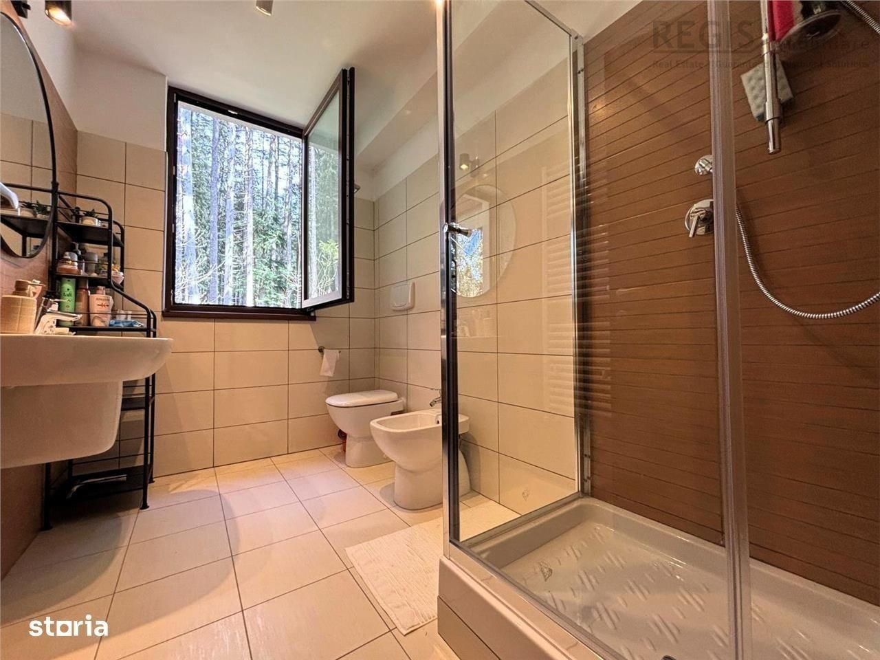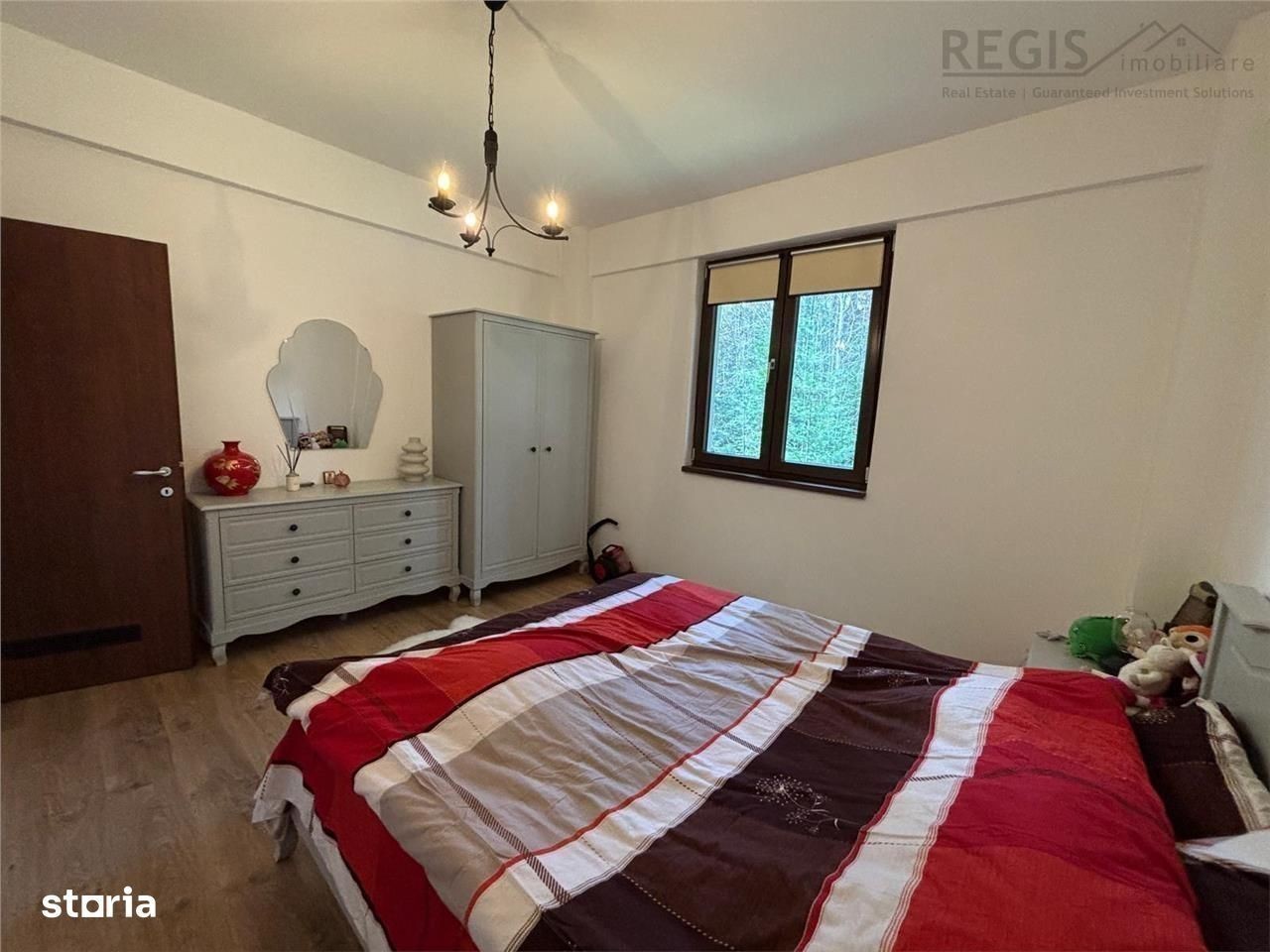 ID Intern 5242. REGIS Imobiliare va prezinta un apartament cu 2 camere situat intr-o zona deosebita din Predeal, la doar cativa pasi de partia de schi si marginea padurii, ideal pentru cei care cauta confort, liniste si acces rapid la natura si activitati montane. Proprietatea este situata la etajul 2 al unui bloc construit in 2014, cu structura solida si finisaje moderne. Apartamentul are o suprafata utila de 40 mp si dispune de un balcon generos de 9 mp, cu vedere spre padure - un spatiu perfect pentru relaxare in aer liber. Se vinde complet mobilat si utilat, cu dotari moderne, fiind gata pentru mutare imediata sau pentru inchiriere in regim hotelier. Apartamentul se afla intr-o zona foarte cautata din Predeal, ideala atat pentru vacante, cat si pentru investitii. Acces facil catre centre comerciale, restaurante si puncte de interes turistic. Aer curat, peisaje spectaculoase si posibilitatea practicarii sporturilor de iarna sau a drumetiilor montane in imediata apropiere. Pentru detalii suplimentare sau programarea unei vizionari,nu ezitati sa ne contactati.