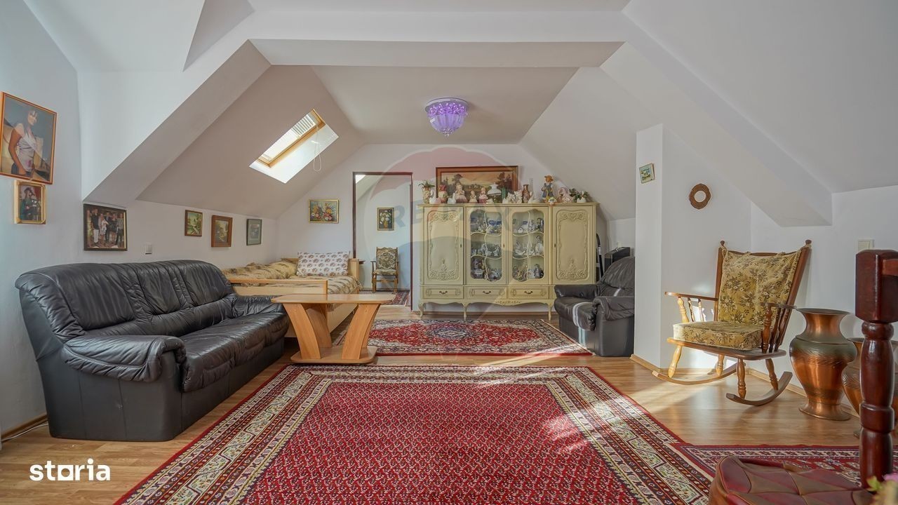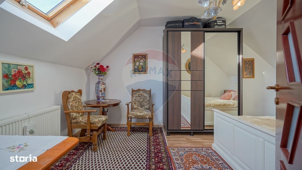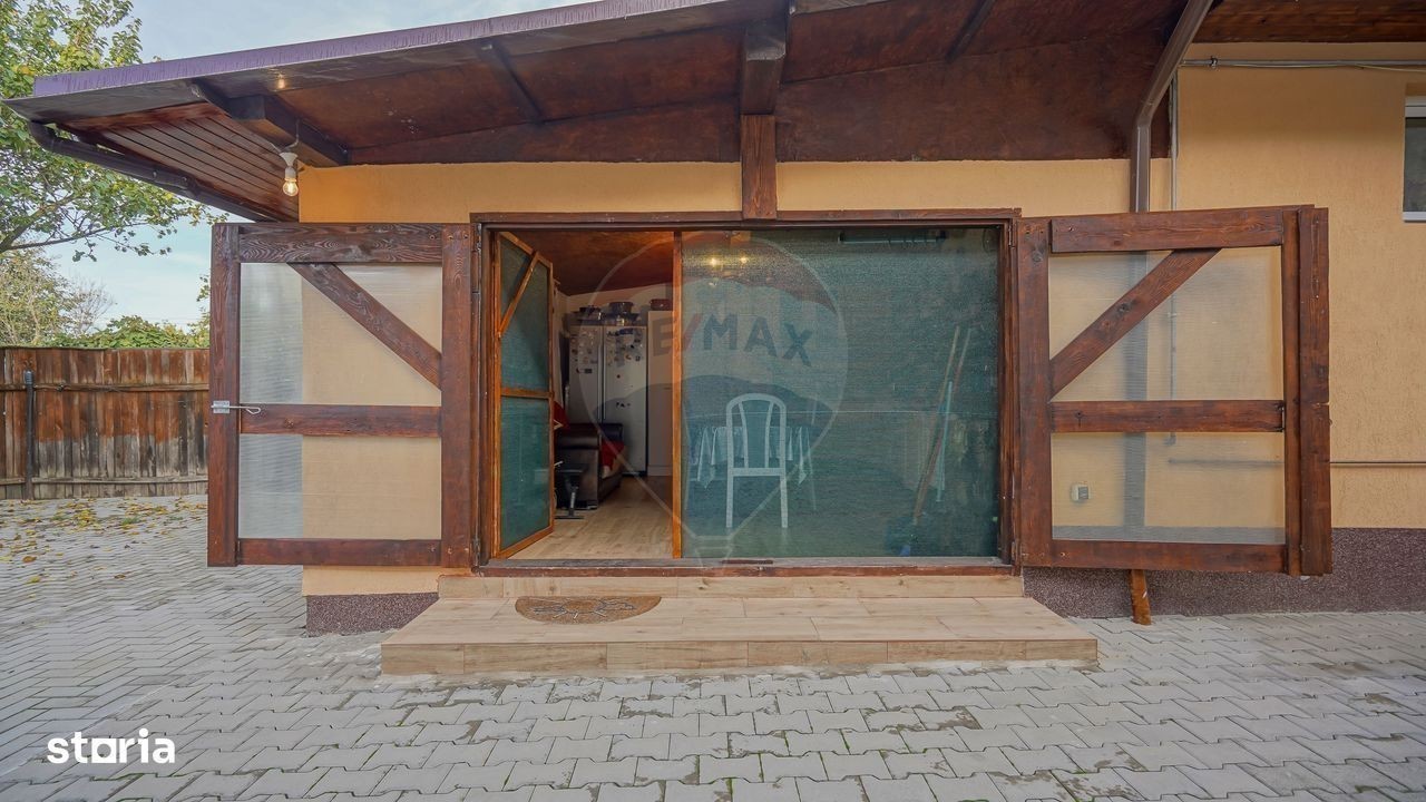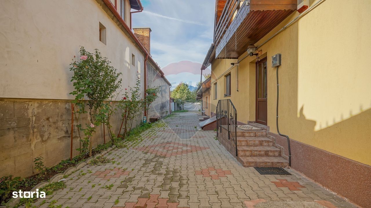 Bună ziua, sunt Zoltan Fejer consultant imobiliar în cadrul biroului Re/max Central și doresc să vă prezint spre vânzare, o proprietate situată în centrul municipiului Săcele. Putem considera localitatea Săcele poarta de acces spre cele două masive muntoase, Piatra Mare și Ciucaș, înțesat de trasee turistice spre Canionul 7 scări, Dâmbul Morii, sau telescaunul din zona Bunloc. Datorită apropierii de Brașov, Săcelele poate fi confundat cu un cartier al orașului, cu acces în 15 minute spre zona comercială Calea București: Kaufland, Carrefour, Metro, Selgors, Jumbo. Imobilul, unic și foarte interesant din punct de vedere al componenței clădirilor dar și a viziunii proprietarului din momentul în care a gândit, a executat și a supervizat fiecare etapă a construirii, poate fi o oportunitate pentru dumneavoastră. Casa, sau mai bine zis corpul principal, este o construcție din 2014 cu regim de înălțime parter și mansardă. Are o suprafață utilă de 133 mp și este compusă din living generos de 30 mp, 3 dormitoare, 2 holuri, o baie la parter și terasă. La mansardă regăsim instalațiile necesare pentru o a doua baie, care poate fi contruită în holul de 34 mp. Imediat lângă scările care duc în casă, avem accesul către pivniță unde pe lângă rafturile obișnuite avem o a doua centrală, de data asta pe lemne dar și o ghiuvetă în cazul în care doriți să pregătiți bunătățuri pentru “la iarnă”. Lipit de casă regăsim o mică garsonieră de 34 mp compusă din camera de zi cu bucătărie, baie și cămară. În continuare avem o terasă închisă, care adăpostește o bucătărie de vară cu spațiu de pregătit și servit “grătarul” alături de cei dragi. Curtea, mai exact terenul are o suprafață de 590 mp. Aici pe lângă pomii fructiferi, este un grătar strategic amenajat lângă carportul de aproximativ 40 mp. Poate musafirii nu încap sub terasa menționată anterior. Sigur, carportul este acoperit și fără probleme oferă suficient spațiu pentru două mașini. După carport vine șura. Spațiu închis, aproximativ 39 mp utili cu destinația de depozit și mic atelier. Sunt sigur că video atașat va completa cele descrise de mine. Vă rog, nu ezitați să detaliem la telefon și să programăm vizionarea!