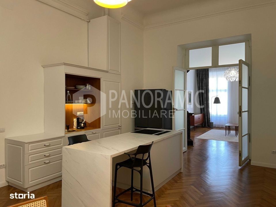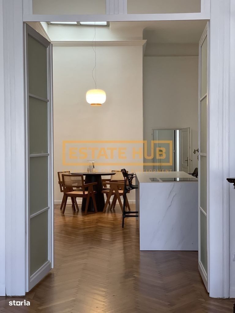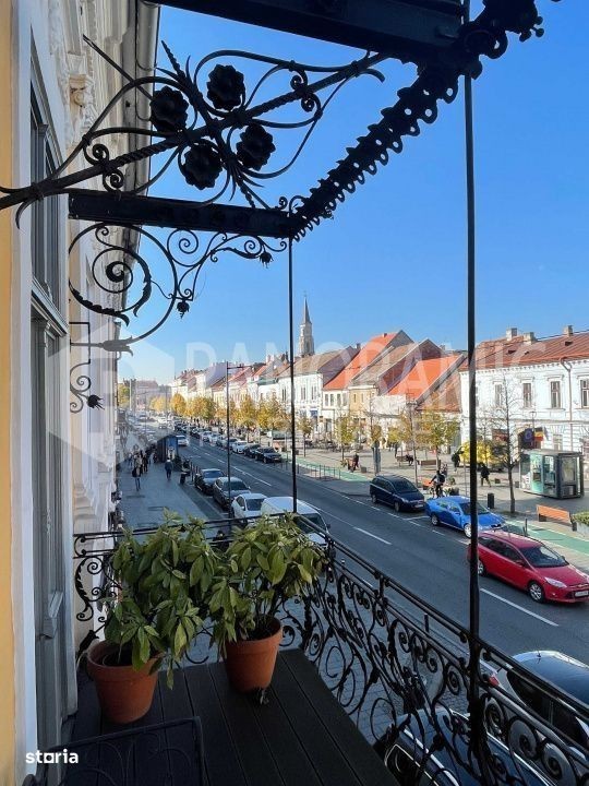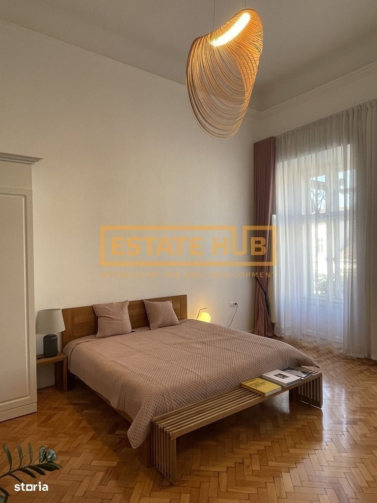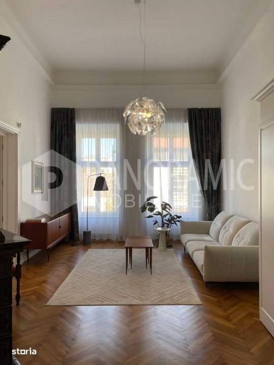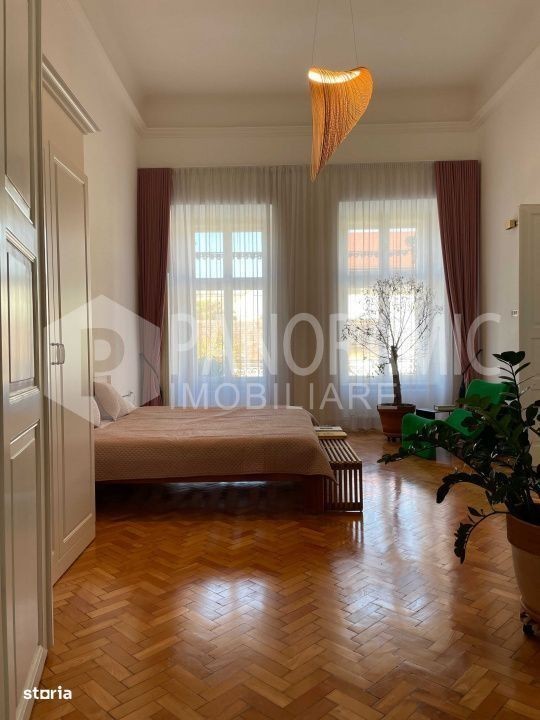 Blitz vă propune spre vânzare un apartament spectaculos, situat în inima orașului Cluj-Napoca, ideal pentru cei care își doresc un spațiu generos, confortabil și elegant. Cu o suprafață de 125 mp, acest apartament cu 4 camere impresionează prin designul său modern și funcțional, fiind alegerea perfectă pentru o familie sau pentru cei care doresc un stil de viață rafinat. Apartamentul este o bijuterie arhitecturală, situată la etajul 1 al Casei Mici Bánffy, un mic palat baroc, de la balconul căruia puteți urmări spectacolul urban al orașului. Dintre elementele sale spectaculoase, amintim balconul elegant, spațialitatea încăperilor de la stradă, cu o înălțime de 4,5 metri, tâmplăriile istorice valoroase cu feronerii originale, soba de factură neorenascentistă de sec. XIX și ușa monumentală dintre spațiul de bucătărie și zona de zi. Locuința se află la etajul 1 al unui imobil cu regim redus de înălțime, oferind astfel intimitate și liniște. Interiorul este compartimentat inteligent, cu un living spațios ce se îmbină armonios cu zona de dining, creând un spațiu deschis și primitor. Bucătăria este complet mobilată și utilată cu electrocasnice premium, oferind atât funcționalitate, cât și un aspect elegant. Cele trei dormitoare sunt amenajate cu atenție la detalii, beneficiind de lumină naturală din abundență datorită ferestrelor mari. De asemenea, apartamentul dispune de trei bai moderne și un balcon generos, ideal pentru momente de relaxare. Finisajele de înaltă calitate, precum parchetul din lemn masiv, ușile interioare premium și ferestrele termopan, completează imaginea unui apartament exclusivist. Sistemul de încălzire este asigurat prin centrală termică proprie, oferind confort pe tot parcursul anului. Datorită poziționării sale ultracentrale, proprietatea asigură acces facil la toate punctele de interes ale orașului, inclusiv restaurante, cafenele, magazine și instituții educaționale. Această locuință este o adevărată oportunitate pentru cei care își doresc un apartament spațios și elegant, într-o zonă premium a Clujului.