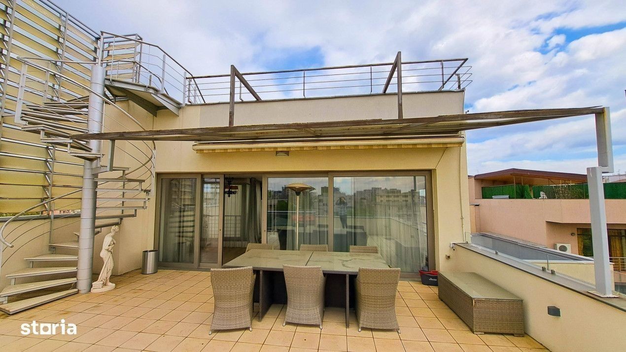 ID: P10782 Penthouse 3 Camere + Dressing - Terasa 282 mp | Metrou 12' | Parcare subterana | Boxa -INTRODUCERE PROPRIETATE- Se oferă spre vânzare un Penthouse superb situat în Centrul Bucurestiului, dar totusi retras si intim, la doar cateva minute de Piata Romana. Această proprietate remarcabilă cu finisaje moderne, ofera un spațiu locativ unic în inima orașului. -TARGET- Proprietatea este ideală pentru cei care isi doresc spatiu generos, intimitate, si doua terase mari pentru relaxare, gratar sau hobby-uri ca gradinaritul urban. In acelasi timp este perfecta pentru cei care apreciaza designul, arhitectura moderna si doresc sa fie aproape de restaurante, cafenele, teatre, muzee, dat totodata sa aiba o “oaza” proprie. Exista posibilitatea de a avea propria piscina pe cea de-a doua terasa. Apartamentul poate fi atractiv si pentru inchirieri pe termen scurt sau lung, adresandu-se publicului high-end. Oportunitate unică de a achiziționa o locuință cu caracter, într-o zonă exclusivistă și bine conectată catre facilitatile urbane. -RANDAMENT- Pentru cei care își doresc o investiție sigura, dar cu un randament excelent, proprietatea poate să aducă câștiguri din inchiriere in valoare de 3500 - 4500 euro/luna, plus o apreciere de valoare anuala de minim 2%. -COMPARTIMENTARE- • Living + Bucatarie + Dining: 82,7 mp • Spalatorie: 6,21 mp. • Dormitoare: • 30,64 mp, cu balcon, dressing si baie proprie. • 25,66 mp. • Bucătărie: complet mobilată și utilată, inclusiv electrocasnice premium. • Băi: • Grup sanitar compact (5,09 mp). • Baie spațioasă (13,2 mp) cu duș si cada, compartimentate separate. • Terasa 1 la nivelul apartamentului: 69,23 mp, perfectă pentru momente de relaxare. • Terasa 2: 211,70 mp. Se ajunge pe o scara exterioara aflata pe terasa apartamentului. Loc ideal pentru piscina si momente de relaxare. • Boxă: 9 mp la demisol. • Loc de parcare subteran. -DESIGN- Proprietatea beneficiază de finisaje high: • Jaluzele aluminiu electrice. • Tâmplărie aluminiu. • Corpuri de iluminat deosebite. • Pergola electrica. • Mobilier modern și electrocasnice incluse. -LOCAȚIE SI POZITIONARE- Locația: penthouse-ul este poziționat într-o zonă centrală și liniștită, aproape de: • Transport: • Metrou Piata Romana (12 minute pe jos). • Recreere: • Parcul Gradina Icoanei (500 m). • Educație: • Grădinițe, școli și universități renumite în proximitate. • Facilități: • Supermarket-uri, piețe, farmacii, bănci și restaurante, teatre, muzee. -ASPECTE PRO- • Spațiu generos, compartimentare practică și finisaje moderne. • Terase generoase. • Spalatorie proprie. • Loc de parcare subteran si boxa, incluse in pret. • Locație excelentă, aproape de toate facilitățile necesare. • Posibilitatea de a avea o piscina exterioara pe cea de-a doua terasa. -ASPECTE CONTRA- • Zona centrala poate fi aglomerata si zgomotoasa. -DISPONIBILITATE MUTARE- Imobilul este pregatit sa isi primeasca noii cumparatori imediat dupa semnarea contractului de vanzare-cumparare. Va puteti bucura de noua locuinta, inca din prima zi. -OFERTA DEDICATĂ CUMPĂRĂTORILOR- Preț: 870.000 Euro - Clienții in prețul de achiziție beneficiază de 20% discount costuri notariale, buget 2000 Lei/prima rata in cazul achiziționării prin credit, 25% discount de amenajare la furnizorii parteneri. Pentru detalii suplimentare și programare, nu ezitați să mă contactați