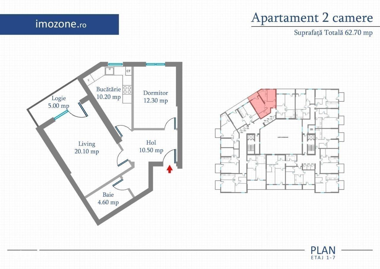 Apartament cu suprafata de 63 mp, cu balcon de 5 mp, bucatarie inchisa cu suprafata de 10 mp, situat la etajul 2, intr-un bloc cu 10 etaje. Apartamentul se preda finisat la cheie, cu baie complet dotata, cu obiecte sanitare montate si bransat la toate utilitatile.
