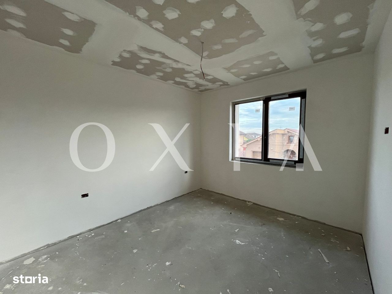 OXIA prezinta spre vanzare duplex despartit prin camera tehnica, cu regim de inaltime P+1 in Giroc zona Bulevardului Armatei, cu suprafata terenului de 330 mp, suprafata utila de 120 mp + terasa acoperita de 9 mp, compartimentat astfel: Parter: -hol acces, -baie dotata cu cada si geam, -living spatios si luminos, -bucatarie, -birou/dormitor, -camera tehnica, -spatiu pentru depozitare, -terasa acoperita, cu acces din living Etaj: -dormitor, -baie dotata cu cada si geam, -dormitor cu dressing, -dormitor Confortul termic este asigurat de incalzirea prin pardoseala, cu ajutorul centralei termice pe gaz si prin intermediul sistemului de climatizare. Casa este construita din caramida Porotherm, izolata cu polistiren de 10cm, acoperita cu tigla. Dispune de utilitati: apa, curent, gaz,iluminat stradal, fibra optica, canalizare. Proiectul este in constructii cu termen de finalizare septembrie 2025. Pret: 220.000 Euro + Comision Agentie Se accepta si achizitionarea prin intermediul unui credit bancar. Oferim consultanta financiara si juridica pe tot parcursul procesului. Pentru mai multe detalii despre aceasta proprietate, sau pentru stabilirea unei vizionari ne puteti contacta la numarul de telefon: