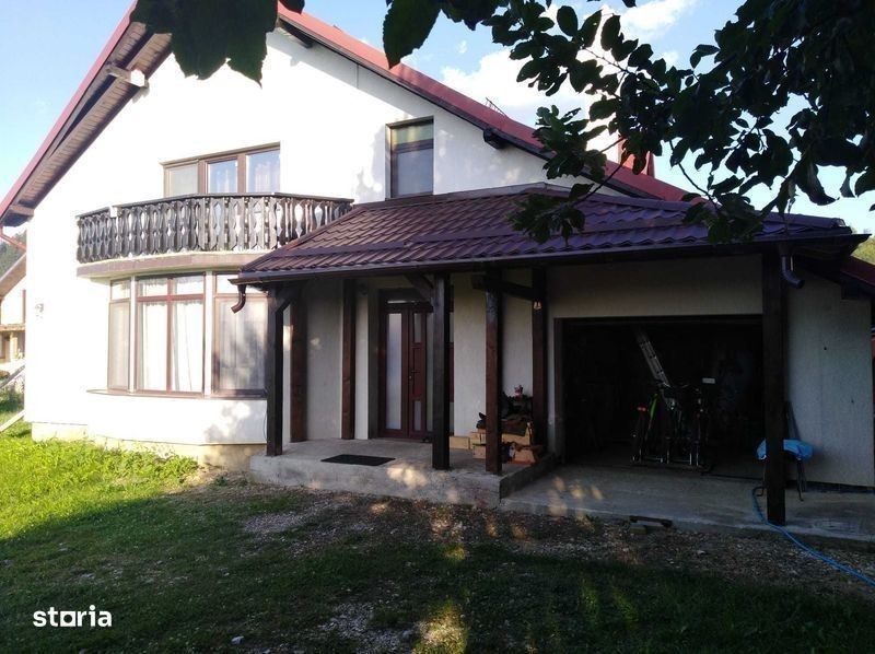 Vand casa cu etaj in Rasnov-Brasov, an constructie 2015, cadre beton si caramida ceramica Porotherm, 255 mp, 5 cam, 3 bai, garaj, geam termopan cu 4 foi sticla, terasa lemn stratificat, 2 terase (fata si spatele casei), toate utilitatile (GAZ,APA,CURENT,RDS), drum asfaltat si iluminat, magazie lemne, centrala pe gaz (Immergas) si centrala pe lemne (Arca Inox), teren suprafata de 3480 mp divizat in 4 loturi cu CF-uri si Intabulare separata fiecare lot. Toata suprafata terenului plata, cu vedere spre Postavarul,Piatra Craiului, Bucegi, De asemenea, pe teren exista o livada de pomi fructiferi pe rod (caisi, visini, meri, pruni). Supraveghere video. Terenul plat permite crearea unui teren de tenis. Aproape de scoli, gradinite liceu, supermarket: Scoala- 7 minute de mers pe jos Gradinita - 7 minute Supermarket - 5 minue Imprejurimi: Poiana Brasov- 15 minute Bran- 15 minute Zarnesti 7 minute Se vinde partial mobilat. Pret 390000 euro/neg Tel.