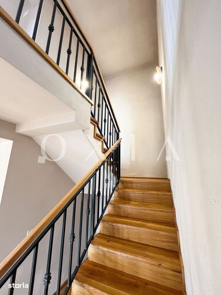 OXIA ofera spre vanzare, jumatate de Duplex in Giroc, in vatra satului, cu suprafata terenului de 270 mp, suprafata utila de aproximativ 145 mp, compartimentata astfel: Parter: - Hol acces - Baie cu dus - Living - Bucatarie inchisa - Camara Etaj: - Hol acces - Dormitor matrimonial - Dressing cu acces din dormitorul matrimonial - Baie cu cada si dus cu acces din dormitorul matrimonial - 2 Dormitoare - Baie dotata cu cada Fiecare unitate din acest duplex beneficiaza de o intrare privata de pe strazi diferite, asigurand intimitate si comoditate pentru locatari. Incalzirea se realizeaza cu ajutorul centralei termice proprii prin calorifere, sau prin intermediul semineului. Finisajele sunt de calitate inalta: vopsea interior/exterior var Kreidezeit, geamuri profile salamander cu 5 camere si 3 straturi de sticla,tamplarie din lemn, parchet stejar masiv Dispune de toate utilitatile (apa, gaz, curent, canalizare), fibra optica si iluminat stradal. Drumul de acces este asfaltat. Casa se vinde partial mobilata si utilata, conform pozelor. Mobilier bucatarie MDF, mobilier bai Arthema, placa din piatra naturala Alte dotari: combina frigorifica, cuptor electric, plita pe gaz, hota,masina de spalat vase, masina de spalat rufe,uscator rufe Clasa energetica A Pret: 240.000 EURO + Comision agentie. Se accepta si achizitionarea prin intermediul unui credit bancar. Oferim consultanta financiara si juridica, gratuita, pe tot parcursul procesului. Pentru mai multe detalii despre aceasta proprietate, sau pentru stabilirea unei vizionari ne puteti contacta la numarul de telefon: