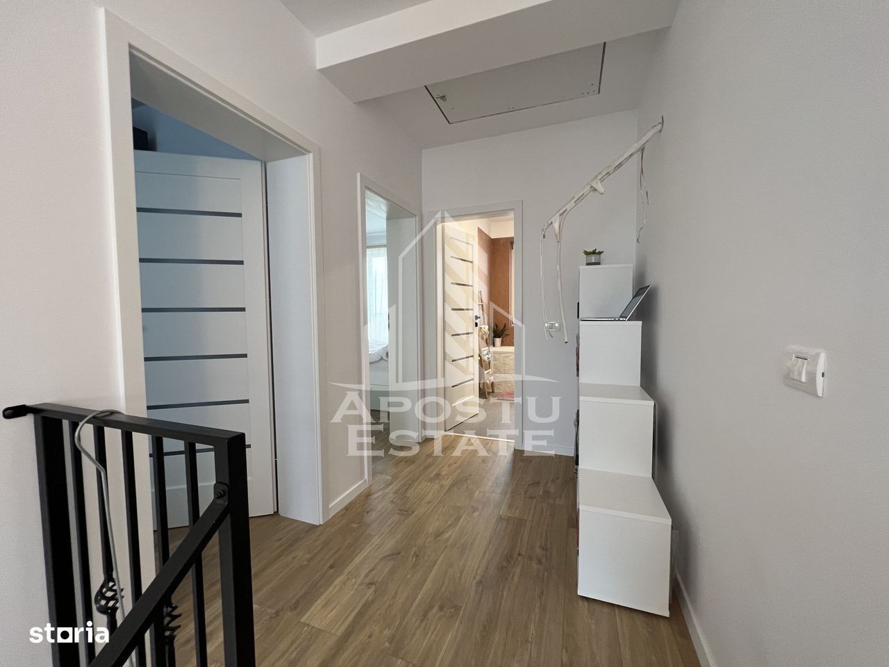APOSTU ESTATE va propune spre vanzare o casa situata intr-un ansamblu de case insiruite in zona Braytim. Locatia imobilului se potriveste perfect celor ce isi doresc sa se detaseze de agitatia orasului. In apropierea locuintei avem urmatoarele puncte de interes: scoala si gradinita la 10 minute distanta, magazine si supermarket-uri, acces facil la mijloace de transport in comun. Drumul de acces este pietruit. Casa se vinde la cheie complet finisata si pregatita pentru noi locatari. Unitatile locative sunt despartite printr-un perete dublu izolat cu polistiren de 10 cm. Proprietatea se intinde pe un teren de 200 mp. Imobilul dispune de 77 mp utili + terasa. Compartimentare: Parter: - hol acces - living spatios si luminos cu bucatarie open space - baie - terasa Etaj: - hol acces - 2 dormitoare. - baie Pod. Detalii tehnice: - regim de inaltime Parter + Etaj + Pod ( nu este Mansarda ) - constructie realizata in anul 2022 din caramida Porotherm de 25 cm. - izolata cu polistiren de 10cm EPS 80 decorativa siliconata. - pereti despartitori complet din caramida (fara rigips,) tencuiti mecanizat, finisati cu glet si vopsea lavabila alba. - placa de beton peste parter si peste etaj. - tigla ceramica. - geamuri termopan cu 3 sticle marca Rehau pentru o izolare fonica si termica superioara de culoare gri antracit interior si exterior. - centrala proprie pe gaz, sistem eficient de incalzire in pardoseala cu garantie 25 de ani. - termostat ambiental pentru fiecare incapere. - aparataje Gewis. - gresie si faianta de la Tempini in ambele bai. - parchet QuickStep rezistent la apa. - scara placata cu lemn. Amenajari exterioare: teren imprejmuit cu gard de beton si lemn vopsit alb, pavaj in partea din fata, 2 locuri de parcare, gazon in partea din spate, foraj pentru irigatii. Utilitati complete: curent, apa de la retea, canalizare, gaz, internet prin fibra optica, cablu Tv. Pentru mai multe detalii nu ezitati sa ne contactati! Acceptam orice fel de credit bancar. Oferim consultanta si solutii financiare prin colaboratorii nostri pentru a obtine cel mai avantajos credit Ipotecar sau Noua Casa. Va asteptam cu drag la o vizionare chiar astazi! ID intern: CP1904578