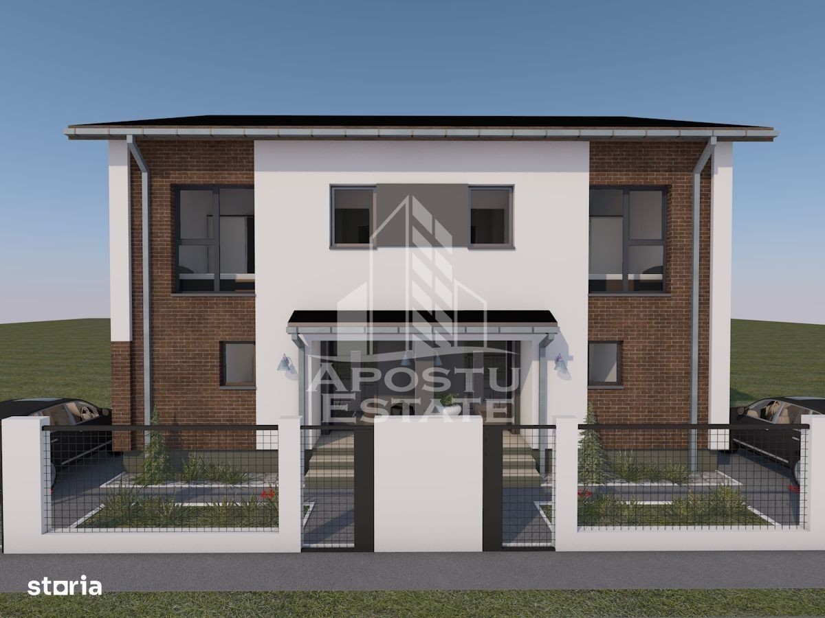 APOSTU ESTATE va ofera spre vanzare un duplex in Chisoda la rosu in zona noua de case. Cladirea este realizata din caramida Porotherm izolatie de 10 cm EPS 80 acoperis de tigla izolat cu spuma. Casa beneficiaza de apa de la retea apa forata gaz curent fosa septica. Terasa din spate este acoperita cu tigla iar zidul despartitor dintre cele 2 jumatati este zidit cu caramida. Confortul termic se realizeaza cu ajutorul centralei proprii pe gaz cu incalzire in pardoseala. Fundatia este de 12 m iar elevatia de 50 cm. Suprafata utila este de 119 mp pe jumatate de duplex iar terenul masoara 300 mp pe jumatate de duplex. Compartimentare: parter - hol acces - baie - bucatarie inchisa - living - spatiu depozitare sub scara etaj - hol - 3 dormitoare - baie Pretul este 180.000 euro Va asteptam cu drag la o vizionare! CP 1902830