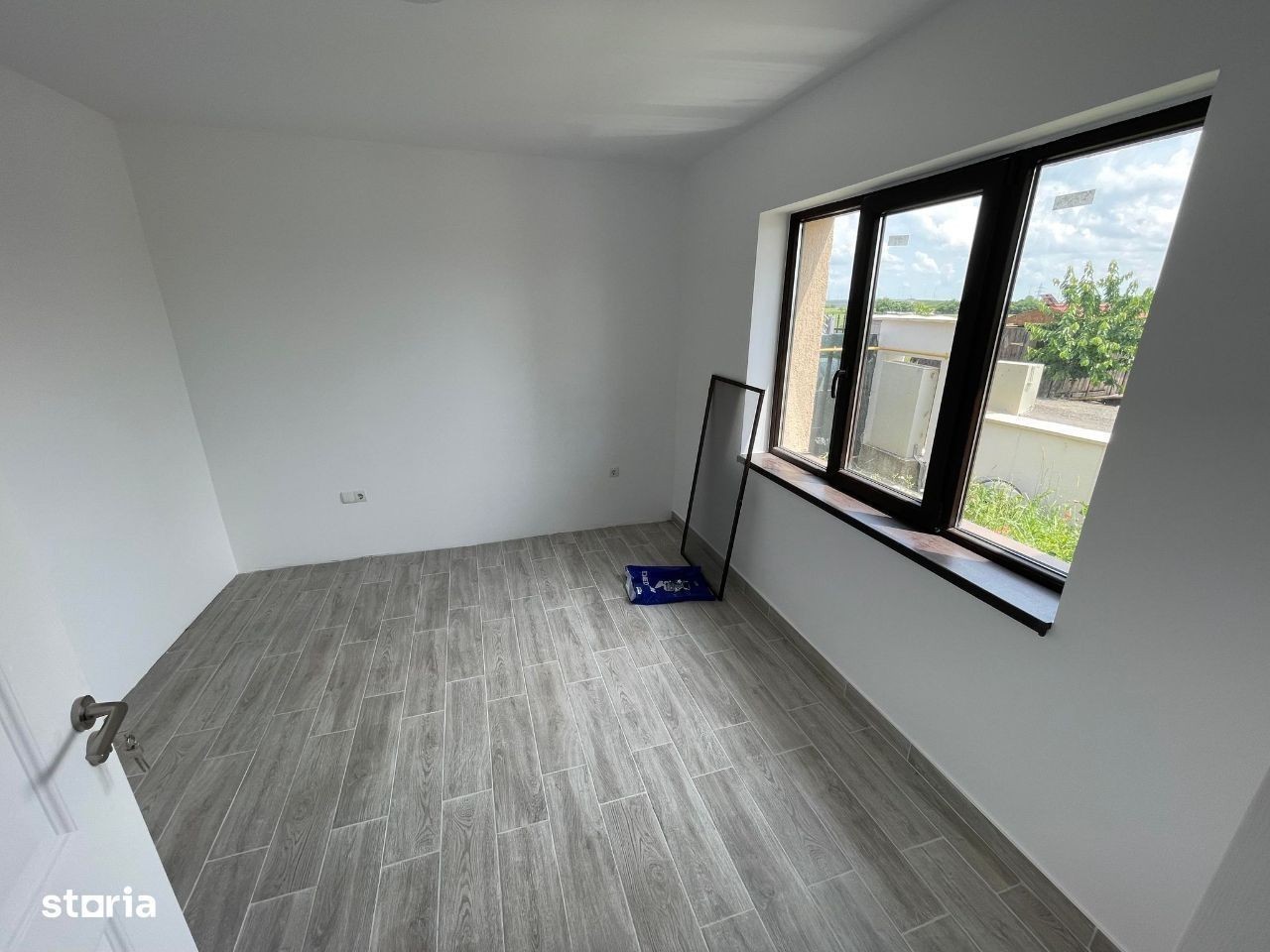 De vanzare casa noua cu suprafata utila de 100 mp situat in Cartierul Marcus impartita in 2 apartamente diferite: Ap1 : camera cu dormitor si living, bucatarie, baie cu vana, hol, terasa acoperita si teren 250 mp Ap2 : dormitor, bucatarie cu loc de luat masa, hol, baie cu dus, terasa acoperita si teren 250 mp. Casa este complet finisata cu geamuri termopane, incalzire in pardoseala cu microcentrala separat pentru fiecare apartament, aer conditionat in fiecare apartament, parchet laminat in camere, gresie-faianta in bucatarie, baie si hol, izolatie exterioara, teren complet ingradit. Utilitati: apa, gaz, curent si canalizare. Pret: 120.000 eur neg