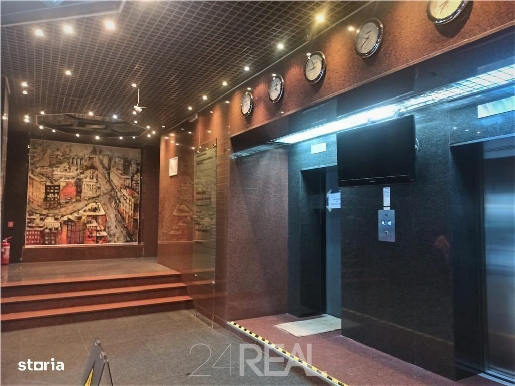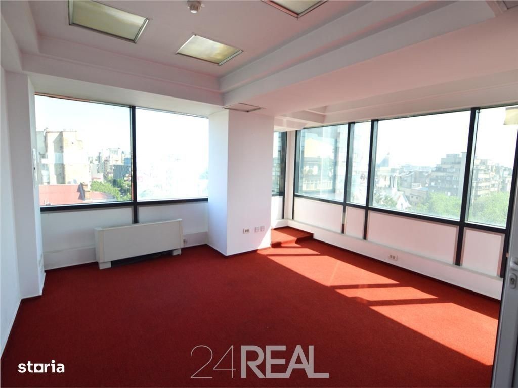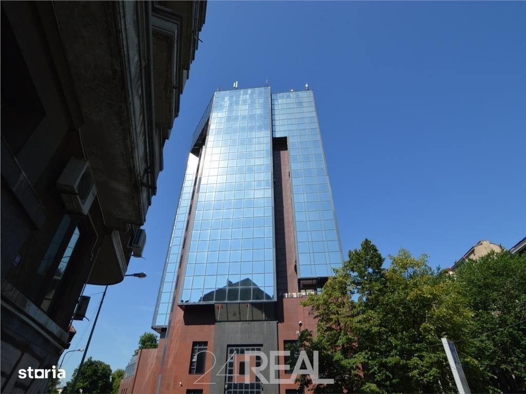 Imobilul este amplasat ultracentral cu acces facil la reteaua publica de transport in comun ( metrou Universitate, STB). Dotari cladire: receptie, paza, acces securizat 24 7, sali conferinte, retea voce-date, climatizare, lifturi moderne, generatori, centrala proprie, parcare supraterana. Spatiile, cu suprafete de 41mp, 45mp, 54mp, 79mp, 99mp si 150mp, sunt situate la etajul 9 al imobilului. Sunt la prima inchiriere dupa renovarea completa, au finisaje elegante, tavan casetat si mocheta noua. Imobilul beneficiaza de o locatie ultracentrala, cu acces facil la mijloacele de transport in comun ( metrou Universitate, STB). Pretul de inchiriere este de 10Euro mp luna+TVA la care se adauga mentenanta in valoare de 4Euro mp luna +TVA ( open book). Pentru parcare, avem disponibile locuri in parcarea supraterana la pretul de 85Euro loc parcare luna +TVA.