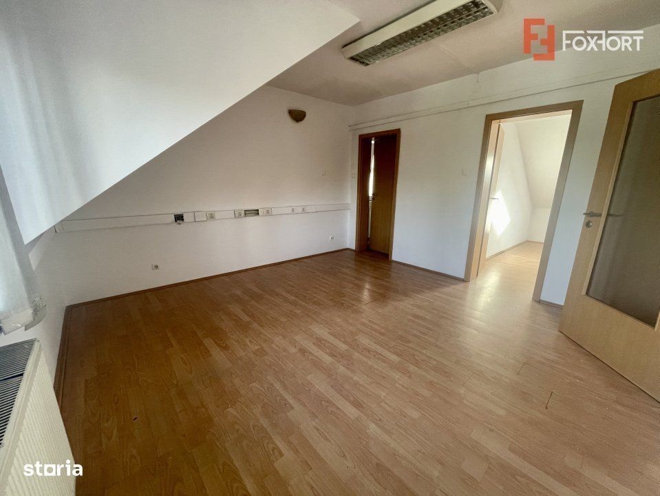 ID intern: C4293 FOXFORT Imobiliare va propune spre inchiriere mai multe spatii de birouri, cu suprafete intre 10-60 mp, situate intr-o cladire de birouri, in zona Crisan - Timisoara, dispuse pe etaj 1 si mansarda inalta. Birourile sunt compartimentate cu 1 sau 2 incaperi, unele dispun si de baie proprie. Dotari: clima. Disponibilitate: -40 mp, 2 incaperi, etaj 1; -34 mp, 1 incapere+baie+depozitare, etaj 2 (M); -60 mp, 2 incaperi+baie+depozitare, etaj 2 (M); -20 mp, 1 incapere, etaj 1; -40 mp, 1 incapere+hol+camera tehnica, etaj 1; -60 mp, 2 incaperi+depozitare, etaj 1; -10 mp, 1 incapere, etaj 1. Preturile sunt cuprinse intre 150 EUR-420 EUR+ tva + Comision standard agentie. Pentru a vedea toate ofertele valabile actualizate periodic, cu preturi reale si ultimele anunturi imobiliare adaugate intrati acum pe site-ul oficial FOXFORT Imobiliare: foxfort.ro Precizati intotdeauna ca ati vazut oferta cu ID: C4293 Sediu agentie: Strada Mures, Nr. 39A, Timisoara, Timis. Mai multe detalii la telefon: **********