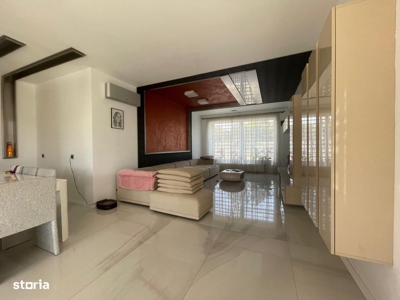Rex Imobiliare va ofera ocazia de a achizitiona o casa superba, complet mobilata si utilata in Timisoara, zona Calea Buziasului Se desfasoara pe o suprafata 190mp utili plus o terasa generoasa de 32mp, totul amplasat pe un teren de 720mp. Compartimentarea este realizata astfel: - Parter: hol de acces, living, baie, bucatarie inchisa - Etaj: 2 dormitoare cu baie propie, 1 dormitor/birou, dressing 18mp, 2 balcoane - In curte se afla piscina, o magazie spatioasa, zona de BBQ si terasa foarte spatioasa. Utilitati: apa, gaz, curent si canalizare, drum asfaltat Dotari: aragaz, frigider, masina spalat vase, masina spalat haine, uscator haine, aer conditionat, televizor, sistem de alarma Se vinde exact ca in poze, complet mobilat si utilat Pret de vanzare: 499.900 Euro negociabil Suna si programeaza chiar acum o vizionare la numarul: