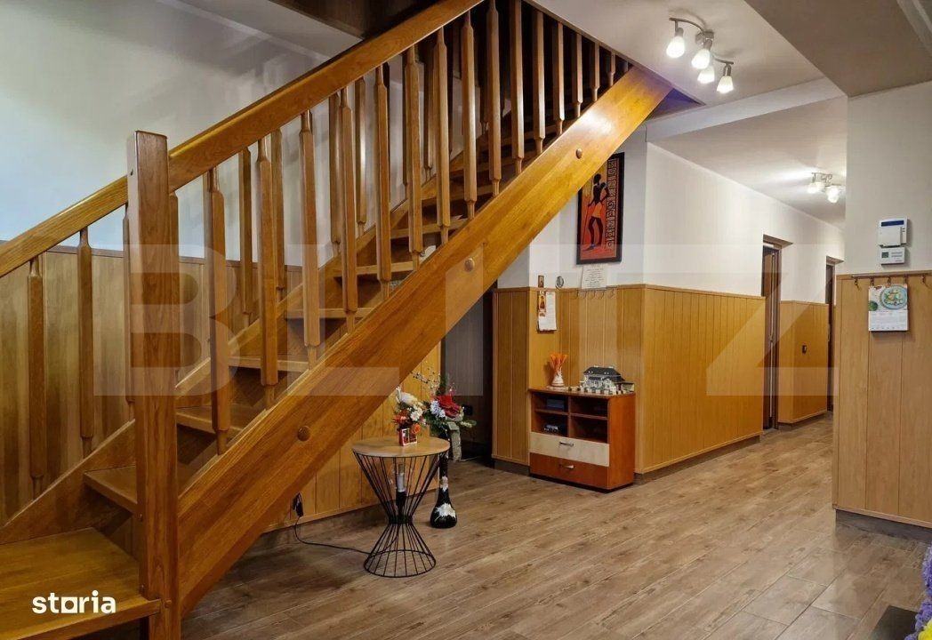 Vă prezentăm această proprietate unică, perfectă pentru cei care caută un spațiu multifuncțional ce îmbină zona rezidențială cu cea comercială. Situată într-o locație excelentă, la 3 minute de drumul catre Poiana Brasov si 5 minute de Piata Sfatului, Biserica Neagra respectiv Poalele Tampei, această clădire impresionează prin dimensiuni, calitatea construcției și facilitățile oferite. Ideală pentru familii și antreprenori care doresc să combine locuința cu afacerea într-un mod armonios și eficient. Sau pentru antreprenori ce doresc sa utilizeze intregul imobil in scop comercial. Exemple: pensiune, cabinete medicale, after school, birouri, showroom, etc.