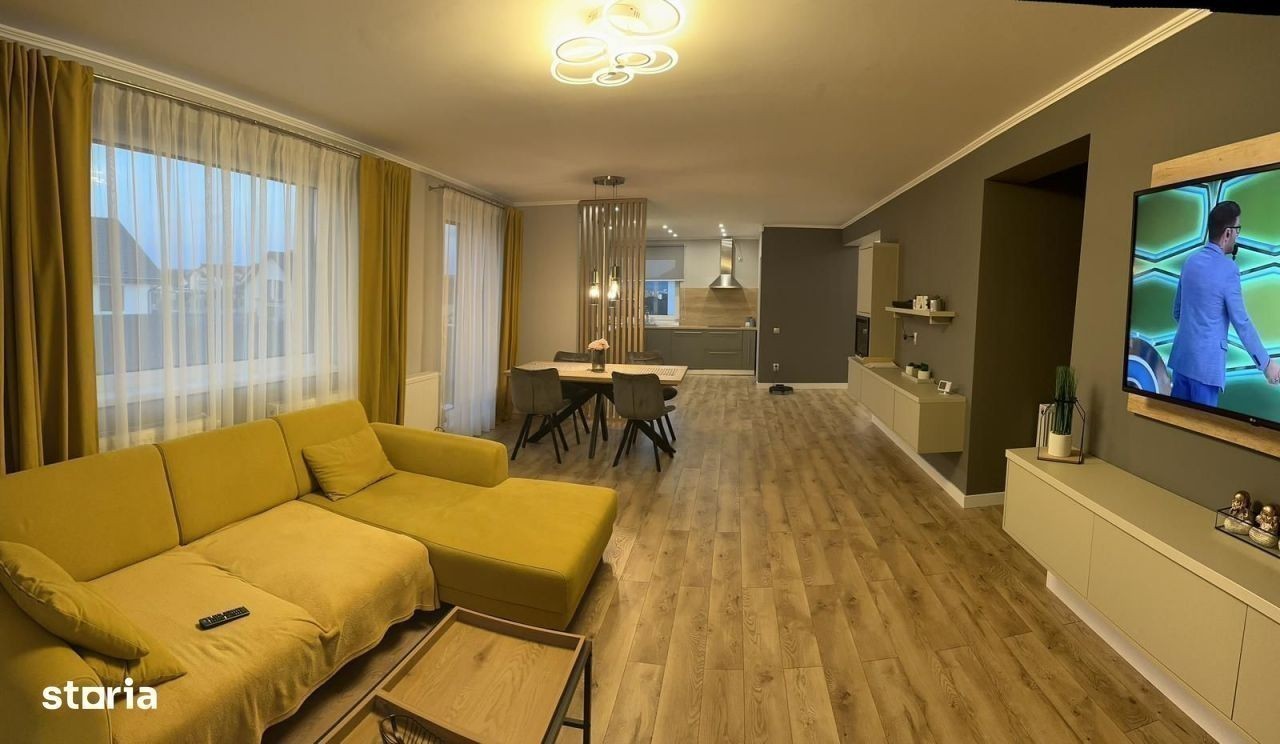 V/3544 Oferim spre vanzare casa cu 3 camere, in Localitatea Nazna, pe strada Viilor; aceasta este situata intr-o zona linistita, cu mult spatiu verde, aproape de magazine si alte puncte de interes comun. Casa are o suprafata utila de 152 mp, suprafata teren de 900 mp, compartimentare decomandata, confort 1; construita pe un singur nivel; izolata pe exterior. Este compusa din 3 camere, bucatarie, camara, 2 bai (una cu geam), hol, dressing si terasa (13,5 mp). Se vinde mobilata si utilata complet, dotata cu centrala termica proprie, sistem de alarma, geamuri termopane, usa metalica la intrare, usi interioare schimbate, pardoseala din parchet laminat, gresie si faianta. Dispune de garaj (69 mp) cu magazie, chiuveta si toaleta. Curtea este amenajata cu pavaj, gazon, tuia, pietre decorative, aspensoare cu programator pentru irigat si tarc pentru caini (iluminat si amenajat); poarta dispune de acces prin telecomanda. Pretul de vanzare al imobilului este de 300.000 euro. Pentru mai multe detalii si informatii, ne puteti apela la numarul de telefon
