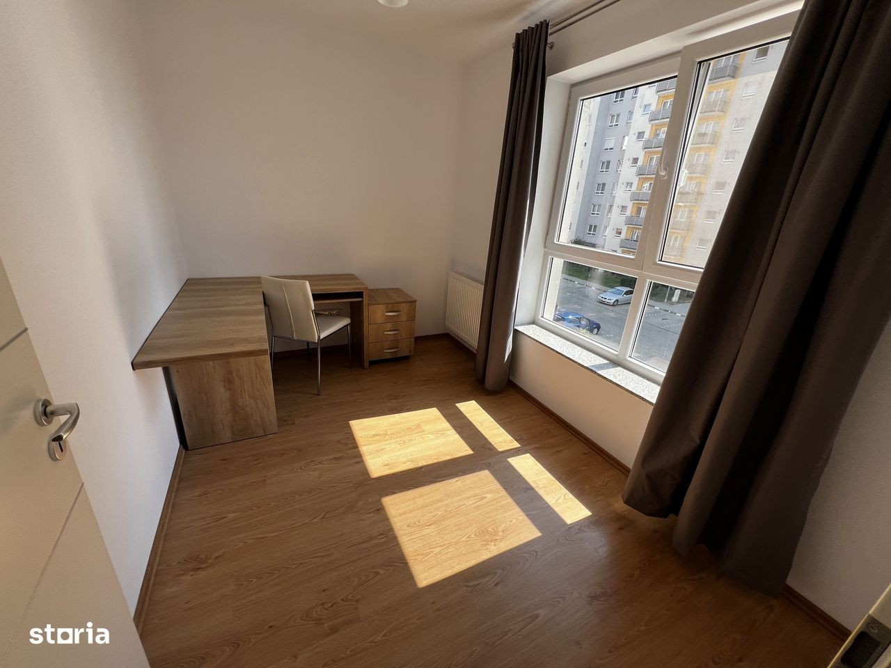 INCHIRIEZ apartament 3 camere decomandat,constructie noua,situat la etajul 2 al unui imobil P+10, cu lift,in zona Mihai Viteazul, (in complex residential Avangarden) cu o suprafata utila de aproximativ 64 mp. Se inchiriaza mobilat si utila,cum se vede in poza.Compartimentare este dispusa astfel : 3 camere semidecomandate din care 1 camera transformata in birou,bucatarie separat,baie,hol spatios,balcon. Imbunatatiri si finisaje: C.T. proprie,masina de spalt vase, geamuri termopan,usi interior, usa metalica la intrare, aer conditionat,acces cablu tv,internet,parcare privata.Pret: 550 Euro negociabil cu contract la Finante inclus+ garantie.