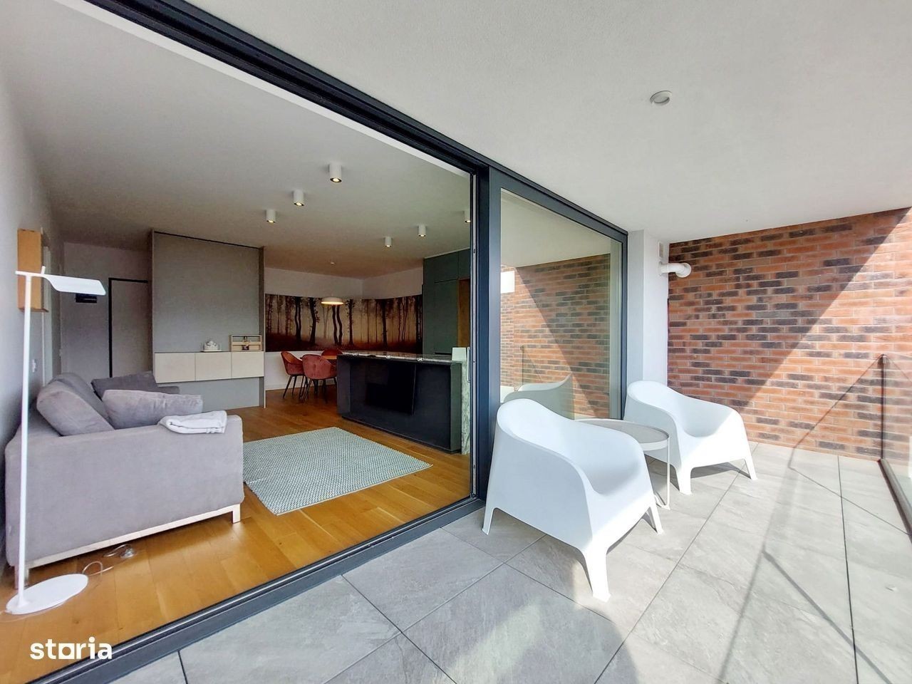 Proprietatea propusa spre inchiriere se afla in complexul rezidential Stejeris, un complex exclusivist, amplasat pe Drumul Poienii cu acces facil atat catre Centrul Istoric al Brasovului, cat si catre Poiana Brasov. Apartamentul dispune de structura decomandata, cu compartimentare practica, suprafete vitrate ample si finisaje premium. Locuinta este compusa din living cu bucatarie, dormitor, baie si o terasa cu panorama directa catre oras si Muntele Tampa. Tranzactionarea se face cu mobilierul din prezentare, iar in pretul afisat este inclus si un loc de parcare suprateran.