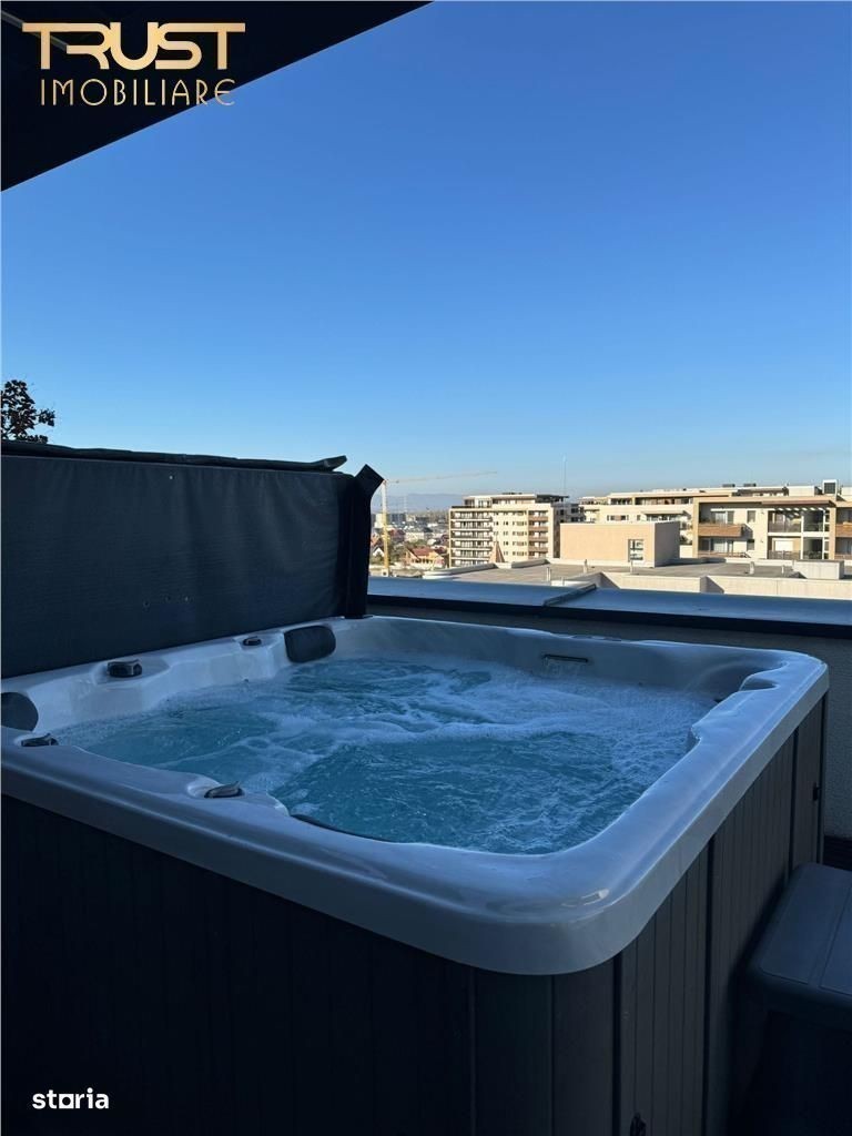 Va propunem spre inchiriere un penthouse deosebit, situat in Cartierul Coresi, una dintre cele mai cautate si bine dezvoltate zone rezidentiale din Brasov. Imobilul se afla chiar vis-a-vis de Mall Coresi, beneficiind astfel de acces facil la centre comerciale, restaurante, cafenele, mijloace de transport in comun si alte facilitati urbane. Locuinta este amplasata la etajul 9 al unui bloc modern si are o suprafata utila de 106 metri patrati, completata de o terasa generoasa de 50 metri patrati, ideala pentru momente de relaxare sau socializare, cu o priveliste panoramica spectaculoasa. Interiorul este luminos si bine compartimentat, iar finisajele sunt de calitate superioara. Proprietatea este dotata cu jacuzzi, un element de confort care transforma locuinta intr-un spatiu ideal pentru cei care isi doresc rafinament si relaxare in propriul camin. Se inchiriaza complet mobilata si utilata, asa cum se vede in imagini. De asemenea, in pret este inclus si un loc de parcare rezervat. Nu se accepta animale de companie. Penthouse-ul este disponibil imediat si reprezinta o oportunitate excelenta pentru cei care doresc sa locuiasca intr-un spatiu modern, elegant si bine pozitionat in Brasov. Pentru mai multe informatii sau pentru a stabili o vizionare, va rog sa ma contactati. DI:TRS8854