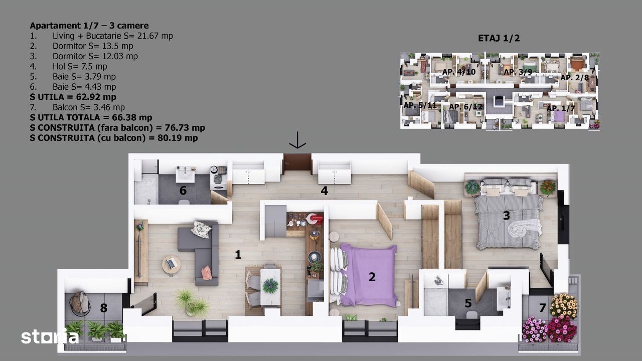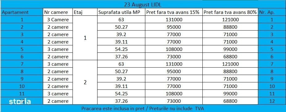 Apartament 3 camere | 23 August Lidl Proiect nou Preturi promotionale