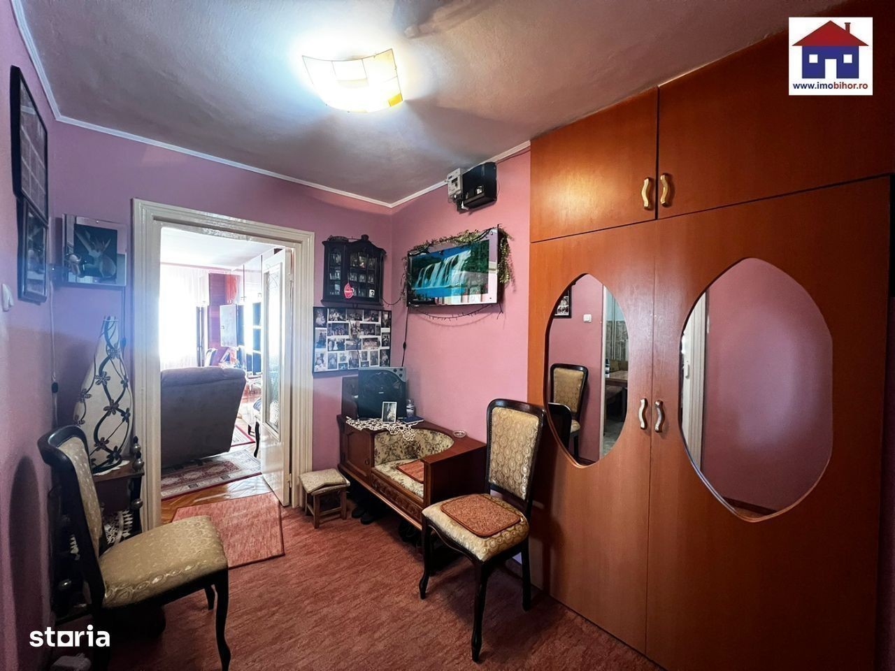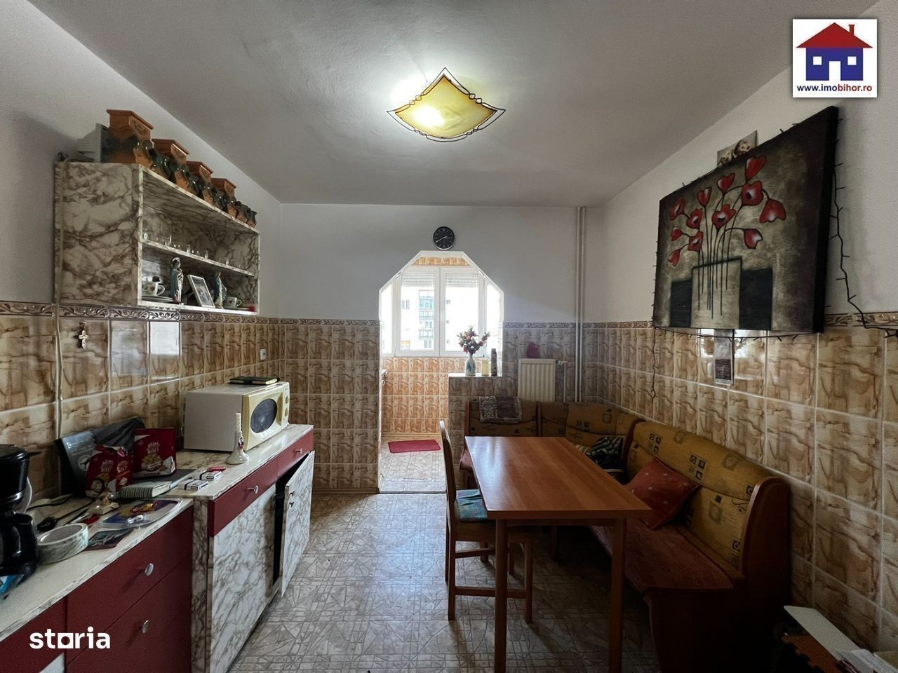 Apartament cu 3 camere situat in Oradea, cartierul Rogerius, intr-un bloc tip B construit in regim de inaltime PARTER + 7 etaje, la etajul 6. Compus din : Antreu, bucatarie, balcon inchis, 2 bai, 2 dormitoare, 3 deabarele si o camera de zi impreuna cu bucatarie.