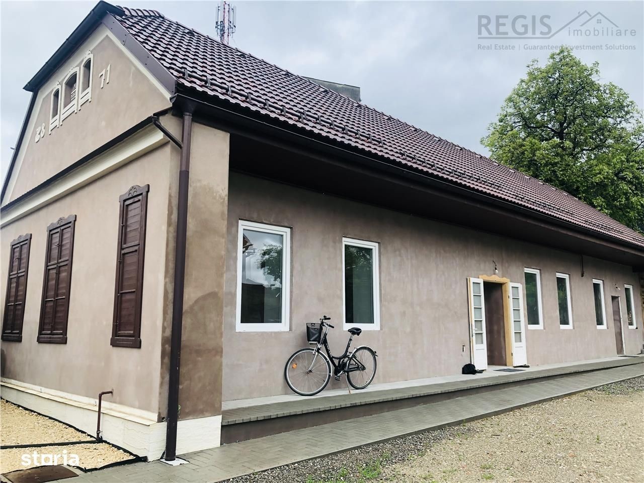 ID INTERN: 5272 Regis Imobiliare va propune spre inchiriere o casa deosebita refacuta de la zero, la prima inchiriere. Totul este nou, nefolosit. Stil rustic imbinat cu stil modern. Casa e in proximitate cu Primaria Sacele pe drumul principal. Pentru finisaje s-a lucrat manual timp de 2 ani pentru a obtine detalii unice de bun gust. Statia de autobuz catre Brasov este la 200m. Structura este decomandata: Camera 1 suprafata 25 mp; Camera 2 suprafata 30 mp; Camera 3 suprafata 18 mp; Bucatarie utilata cu suprafata de 15 mp; Terasa 47 mp; Beci 15 mp. Suprafata totala de curte + gradina este 1150 mp. Suprafata totala proprietate, casa si teren 1300 mp. Casa are cu 2 grupuri sanitare fiecare echipata complet si aerisita natural. Terasa e punctul de atractie, pentru servit cafeaua, masa cu familia, pentru privelistea incantatoare catre munte. Posibilitate de parcare în curte. Proximitati : Market Brio, Restaurant Fenyes, Lidl, Penny, Kaufland, Profi, Banci, Scoli, Brutarie, Aprozar, Cafenea, Farmacie, Politie, Spital. Centrala termica pe gaz, va ofera incalzire în pardoseala, pentru un consum economic la facturile de utilitati. Curent electric 220V si 380V, cu posibilitate de încarcare auto. Distante cu masina: 10 minute cu masina de Calea Bucuresti, Carrefour, Selgros, Metro, Kaufland. 2 minute pana la Farmacie, 5 minute Restaurant Pizza Bella. Aceasta locatie este ideala pentru familie care iubeste natura, sau firma pentru birouri. Se inchiriaza pe o perioada minim de 1 an, cu posibilitate de prelungire contract. Pentru inchiriere se platesc chiria lunii in curs si garantie. NU se permit animale de companie in locatie, ci doar in curte. Casa este partial. mobilata. Poate devini ocul unde te intorci cu placere. Merita sa o vezi! Comision inchiriere 50% + TVA din prima chirie Te asteptam cu drag la vizionare! Consultant Imobiliar Gabriela